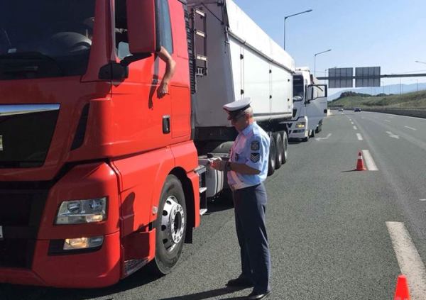 Ως μάρτυρες κατέθεσαν οι δύο αστυνομικοί που ήταν στον τροχονομικό έλεγχο το απόγευμα της Τρίτης στην ΠΑΘΕ. Ο ένας είπε ότι ο κατηγορούμενος έδωσε την άδεια κυκλοφορίας του φορτηγού το δίπλωμά του και την ταυτότητα, όταν του ζητήθηκαν, αλλά φάνηκε ότι προσπαθούσε να κρύψει κάτι, που όπως αποδείχτηκε ήταν ο ταχογράφος άλλους φορτηγού, για να μην μπορεί αν διαπιστωθεί πόσες ώρες εργαζόταν. Αρχικά έριξε τον ταχογράφο πίσω από το κάθισμα του οδηγού, αλλά όταν οι αστυνομικοί τον αντιλήφθηκαν και πήγαν να το πάρουν, άρχισε να τους χτυπάει με κλωτσιές και τα χέρια. Στη συνέχεια το έβαλε στην τσέπη, οι αστυνομικοί το ζήτησαν και τότε αντιστάθηκε ξανά, μέχρι που του πέρασαν χειροπέδες και διαπίστωσαν ότι ήταν μια δεύτερη κάρτα ταχογράφου, η οποία κατασχέθηκε. Όπως είπε ο δεύτερος αστυνομικός η δεύτερη κάρτα σημαίνει ότι οι αρχές δεν μπορούν να διαπιστώσουν αν ο οδηγός έχει ξεκουραστεί, όπως ορίζει ο νόμος και υπάρχει κίνδυνος ατυχήματος.