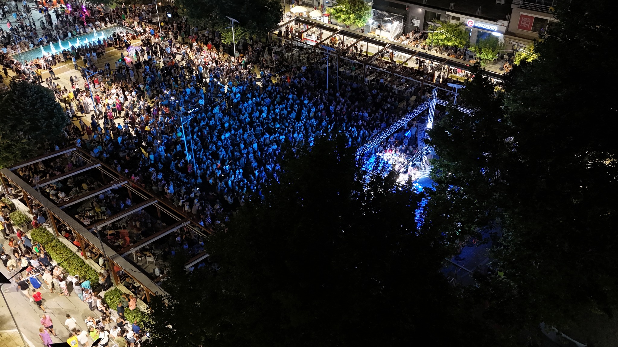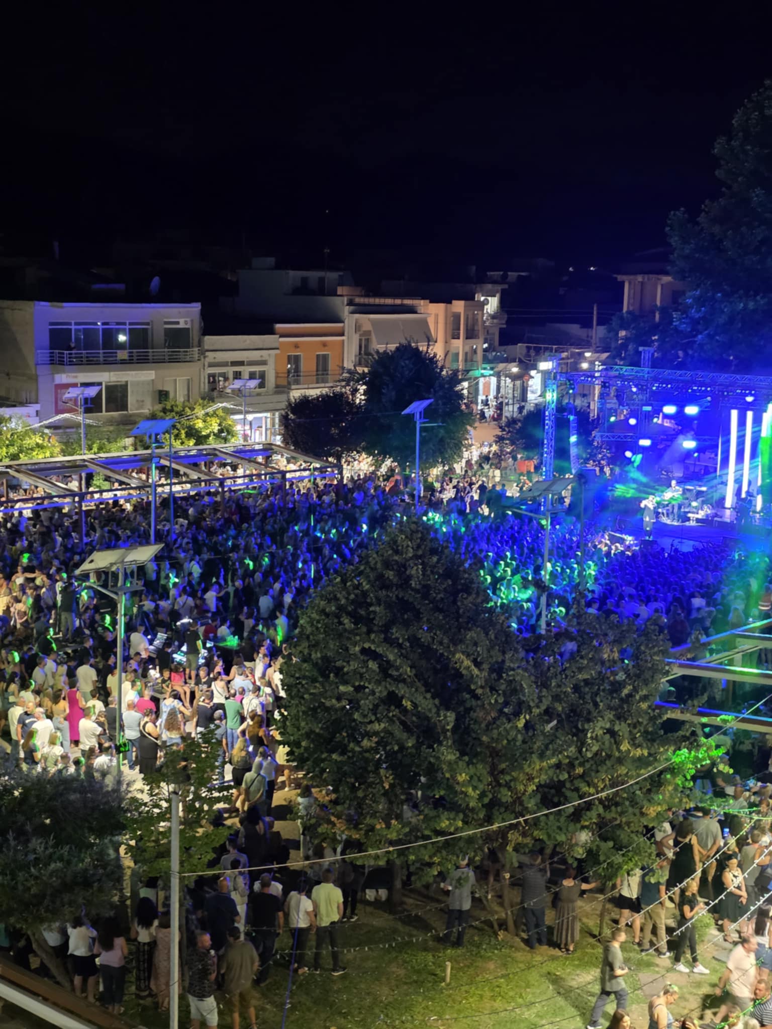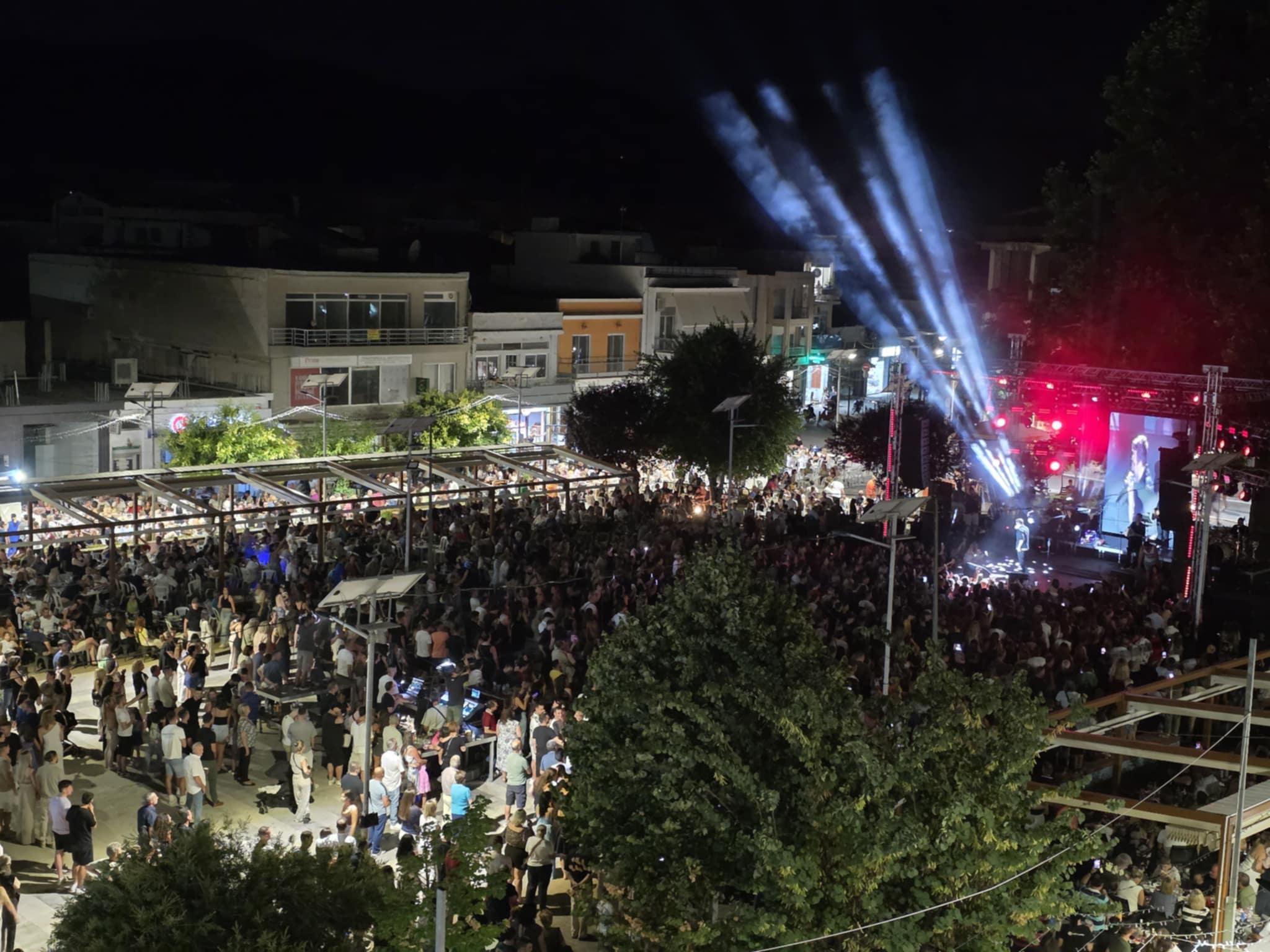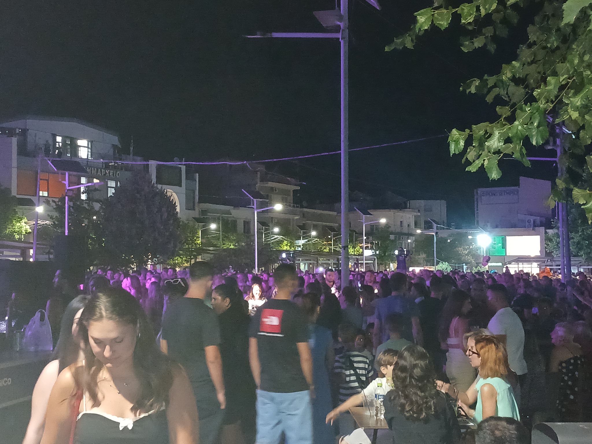 Χιλιάδες κόσμου κατέκλυσαν την πλατεία, με τα λεωφορεία να καταφθάνουν από Λάρισα, Τρίκαλα, Καρδίτσα αλλά και από τη Λαμία. Ο γνωστός και πολύ αγαπητός καλλιτέχνης παρέμεινε για ώρες στη σκηνή, τραγουδώντας τις γνωστές του επιτυχίες, αλλά και άλλα τραγούδια αγαπημένων τραγουδιστών.
