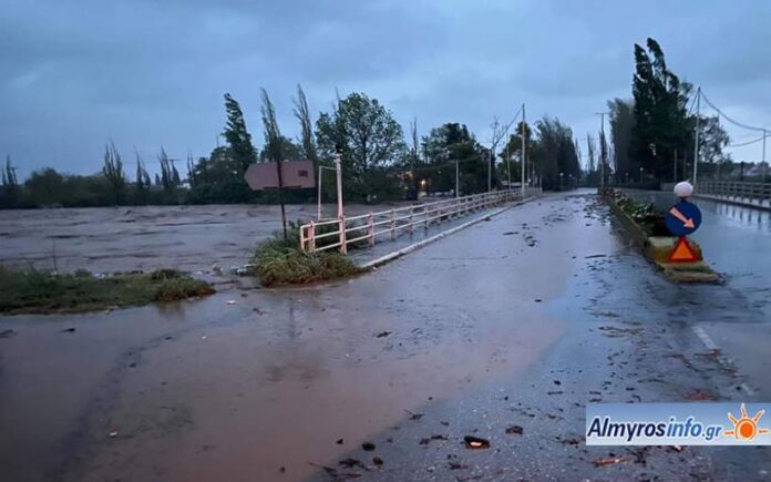 Στο ύψος της γέφυρας Ξηριά στο δρόμο Αλμυρός-Πλάτανος έφτασε το νερό από την κακοκαιρία που έπληξε τον Αλμυρό, χθες Παρασκευή. Ο δρόμος έκλεισε προσωρινά, ενώ ο χείμαρρος υπερχείλισε στο ύψος των σχολείων.