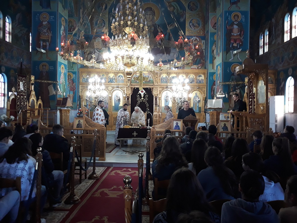 Μέσα σε κλίμα ευλάβειας και προσευχής παρακολούθησαν όλοι οι μαθητές του Γυμνασίου – Λυκειακών Τάξεων Ευξεινούπολης την Τετάρτη 29 Μαρτίου 2023, στον Ιερό Ναό της Κοιμήσεως της Θεοτόκου Ευξεινούπολης, μια ιδιαίτερη Υποδειγματική Θεία Λειτουργία. Την Υποδειγματική Θεία Λειτουργία πραγματοποίησαν ο Μητροπολίτης Δημητριάδος και Αλμυρού κ.κ. Ιγνάτιος, οι Πατέρες Γεώργιος Μπέκας, Γεώργιος Γιαννιός και ο Διάκονος Ιωσήφ.