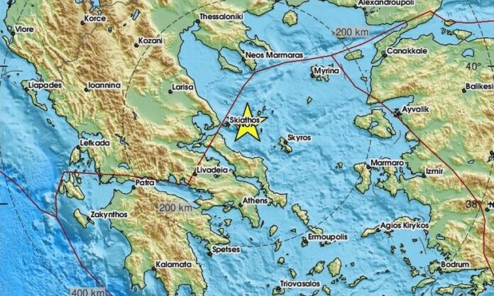 Το ακριβές επίκεντρο της δόνησης εντοπίζεται στον θαλάσσιο χώρο 12 χλμ. βόρεια της Σκοπέλου σύμφωνα με το EMSC.