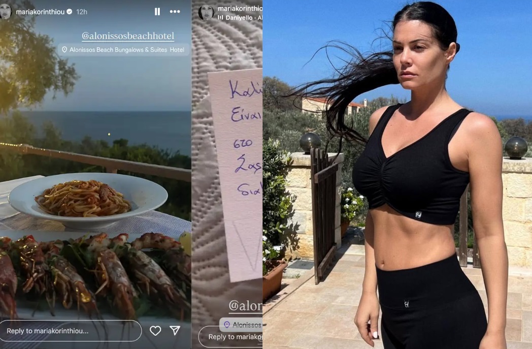 Παράλληλα, η Μαρία Κορινθίου μοιράστηκε την όμορφη παραλία στην οποία βρίσκεται το κατάλυμα που μένει στο νησί, τη μαγευτική θέα που έχει από το μπαλκόνι του αλλά και τα γευστικά πιάτα που επέλεξε να φάει.