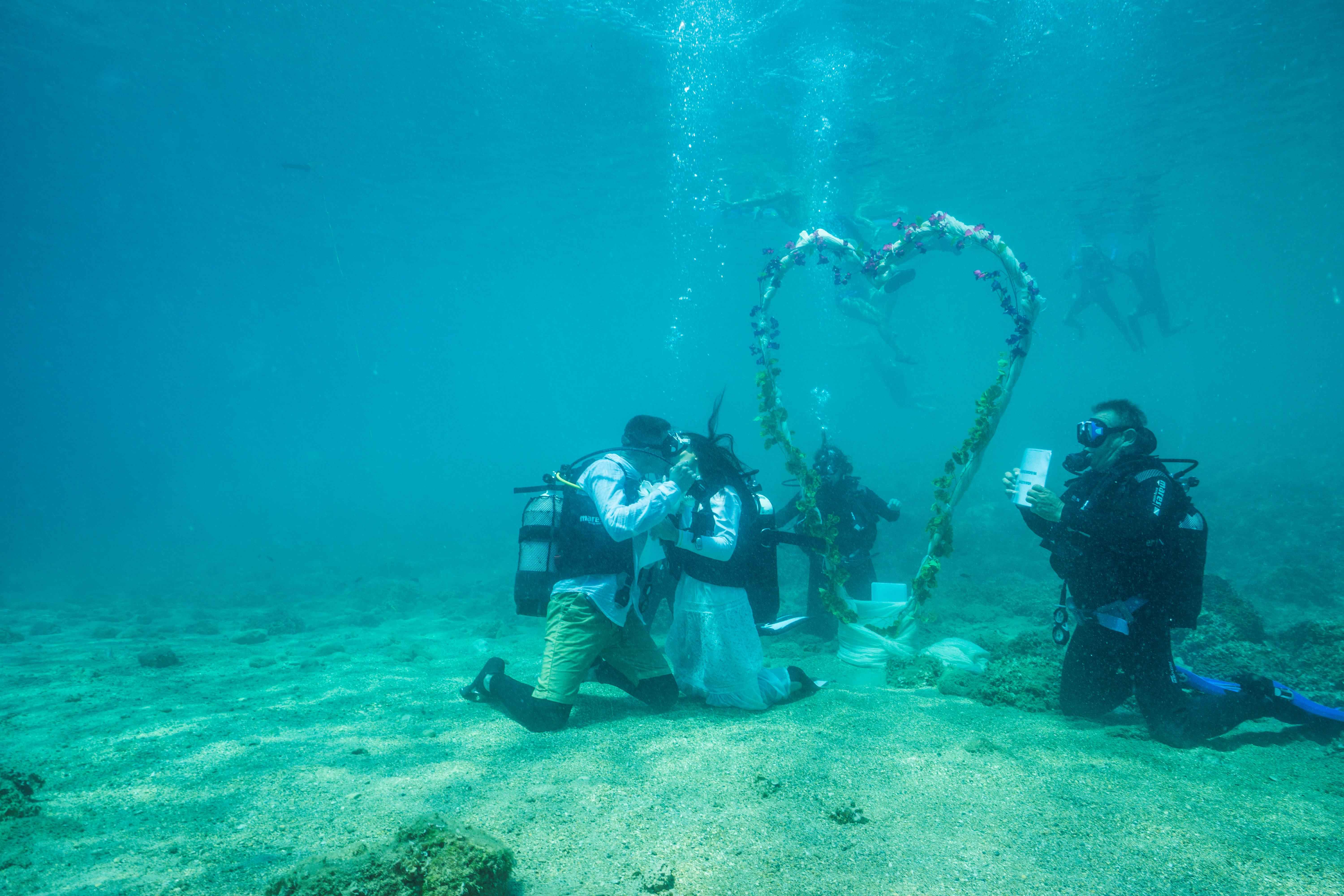 Εντυπωσιάζουν στην Αλόννησο οι υποβρύχιες φωτογραφήσεις γάμου στο πλαίσιο των γαμήλιων τελετών που διοργανώνει ο Δήμος στον βυθό του νησιού. «Εμπλουτίζουμε το κάλεσμα μας για επίσκεψη στην Αλόννησο με πρωτοβουλίες που φέρνουν τους ταξιδιώτες πιο κοντά στη φύση, σε σημαντικές στιγμές της ζωής τους», αναφέρει χαρακτηριστικά ο Δήμαρχος Αλοννήσου Πέτρος Βαφίνης. Σημειώνεται πως ο πρώτος υποβρύχιος γάμος πραγματοποιήθηκε τον περασμένο Αύγουστο, ανοίγοντας τον δρόμο σε μια νέα υπηρεσία για την οποία ήδη υπάρχει ζήτηση για προγραμματισμό νέων γάμων στο εξωτικό νησί των Σποράδων το φετινό καλοκαίρι. «Προκειμένου να δώσουμε το κίνητρο στα νέα ζευγάρια να ανταλλάσσουν όρκους αιώνιας αγάπης στο βυθό μας, έχουμε συνεννοηθεί με καταδυτικά κέντρα του νησιού ώστε να παρέχονται δωρεάν ο καταδυτικός εξοπλισμός καθώς και τα απαραίτητα μαθήματα εκπαίδευσης στους μελλόνυμφους. Ο υποβρύχιος γάμος είναι μια βιώσιμη μοναδική εμπειρία με μηδαμινά κόστη. Η ανταπόκριση των ζευγαριών είναι ενθαρρυντική και δικαιώνει την προσπάθεια μας για τη δημιουργία μιας νέας γαμήλιας αγοράς», δήλωσε ο κ. Βαφίνης. Συμπληρωματικά με τους υποβρύχιους γάμους ή και ανεξάρτητα από τον τύπο του γάμου, ο προορισμός ενθαρρύνει και τη διεξαγωγή υποβρύχιων γαμήλιων φωτογραφίσεων, καθώς τα αποτελέσματα από το πρώτο “άλμπουμ” υποβρύχιου γάμου ξεχωρίζουνhttps://mega.nz/folder/1d0UgbIT#Dq5BoS7FJd_t0HPmvaI1wA.