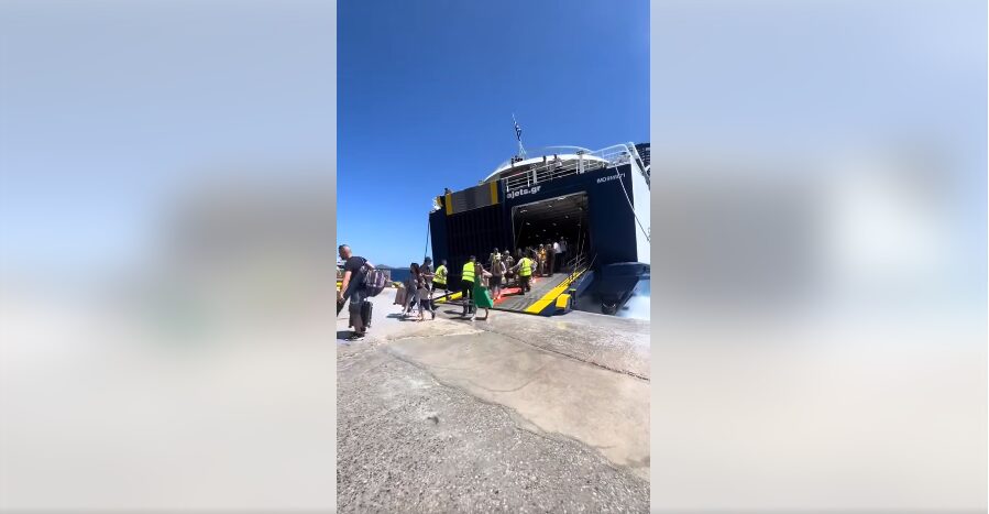 «Αποβίβαση και επιβίβαση με fly over…», είναι χαρακτηριστικά ο τίτλος που χρησιμοποιήθηκε στο βίντεο, που δείχνει τους λιμενικούς να βρίσκονται στο σημείο και να δίνουν κατευθύνσεις στους επιβαίνοντες για να αποβιβαστούν με ασφάλεια.