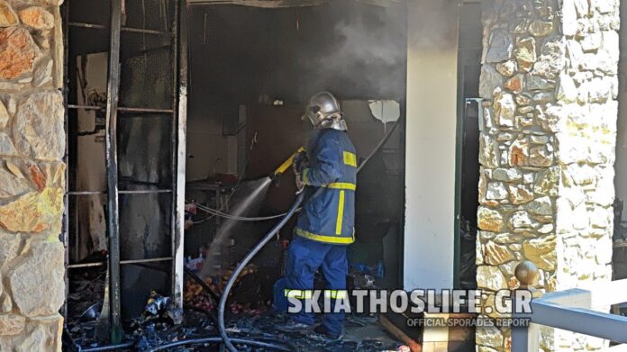 Αναστάτωση προκλήθηκε από φωτιά στις 14.10 περίπου στο Εμπορικό Κέντρο (Φόρτσα) στην περιφερειακή οδό της Σκιάθου και συγκεκριμένα στον 1ο όροφο σε επιχείρηση με Φρούτα. Η φωτιά από άγνωστη αιτία εξαπλώθηκε γρήγορα σε ολόκληρη την επιχείρηση που καταστράφηκε ολοσχερώς ενώ εκείνη την ώρα ήταν κλειστή, ενώ δεν υπήρχε εξάπλωση της φωτιάς στα διπλανά γραφεία της επιχείρησης και τα υπόλοιπα του Εμπορικού Κέντρου αφού ήταν άμεση η επέμβαση των ανδρών του Πυροσβεστικού Κλιμακίου Σκιάθου που επενέβει με 4 οχήματα και 8 άντρες.