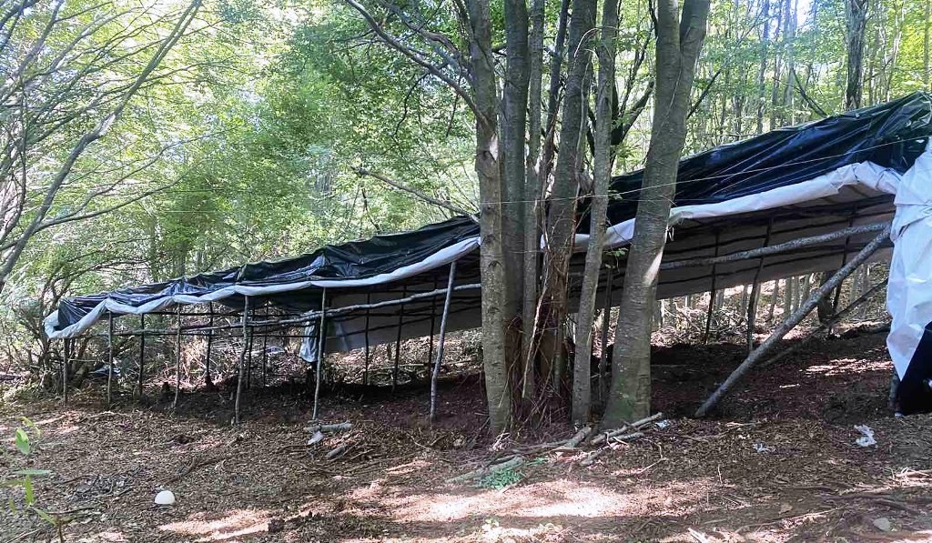 Παραπλεύρως των καλλιεργήσιμων επιπέδων εντοπίστηκαν δύο αυτοσχέδιες ξύλινες κατασκευές με εννέα αυτοσχέδια κρεβάτια, πλήθος ενδυμάτων και κλινοσκεπασμάτων. Επίσης ανευρέθηκαν δύο αυτοσχέδιοι ειδικά διαμορφωμένοι χώροι με πλήθος μαγειρικών σκευών, κονσερβών, λοιπών τροφίμων αλλά και με φιάλες και εστίες υγραερίου.
