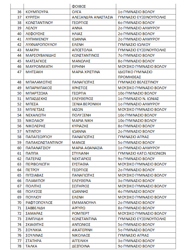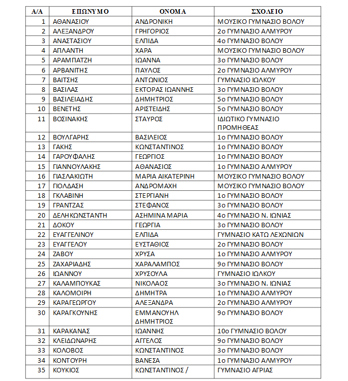 ΑΛΦΑΒΗΤΙΚΗ ΛΙΣΤΑ ΕΠΙΤΥΧΟΝΤΩΝ ΤΗΣ Α ́ ΓΥΜΝΑΣΙΟΥ ΣΤΟ ΔΙΑΓΩΝΙΣΜΟ « Ο ΘΑΛΗΣ» 2016