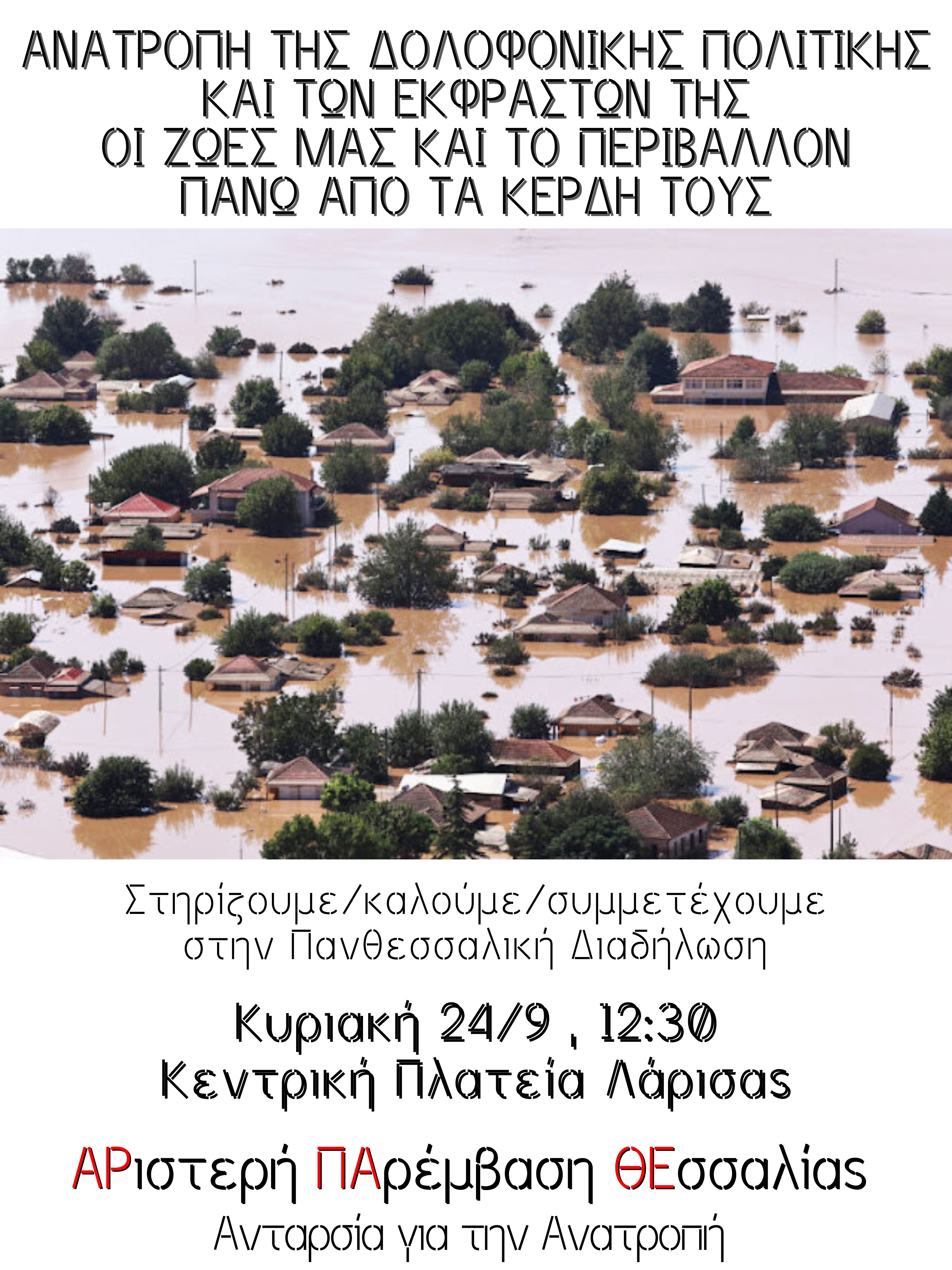 Όπως επισημαίνει στην ανακοίνωσή της «Τα νερά που αποτραβιούνται στον πλημμυρισμένο θεσσαλικό κάμπο αποκαλύπτουν μέσα στο τοπίο της λάσπης με τον πιο τραγικό τρόπο την απώλεια ανθρώπινων ζωών που δεν έχουν ακόμη καταμετρηθεί στο σύνολό τους, την καταστροφή αγροτικής και κτηνοτροφικής παραγωγής και περιουσίας των κατοίκων της περιοχής τεράστιου μεγέθους με βαρύτατες συνέπειες για τους εργαζόμενους, τους φτωχο-μεσαίους αγρότες και τους μετανάστες εργάτες γης, αλλά και για το φυσικό περιβάλλον. Ταυτόχρονα αναδεικνύεται ως μέγα κοινωνικό ζήτημα η ανθρωπιστική καταστροφή που συνεπάγεται και αφορά τις συνθήκες διαβίωσης των πληγέντων ανθρώπων της περιοχής (στέγασης, σίτισης, περίθαλψης), τις βεβαρυμμένες υγειονομικές συνθήκες που διαμορφώνονται και επηρεάζουν άμεσα και μακροπρόθεσμα τη ζωή τους , την ακύρωση βασικών αναγκών και δικαιωμάτων κάθε ηλικίας (ασφάλεια, εργασία , σχολική ζωή, φροντίδα και μέριμνα για όσους την έχουν ανάγκη).