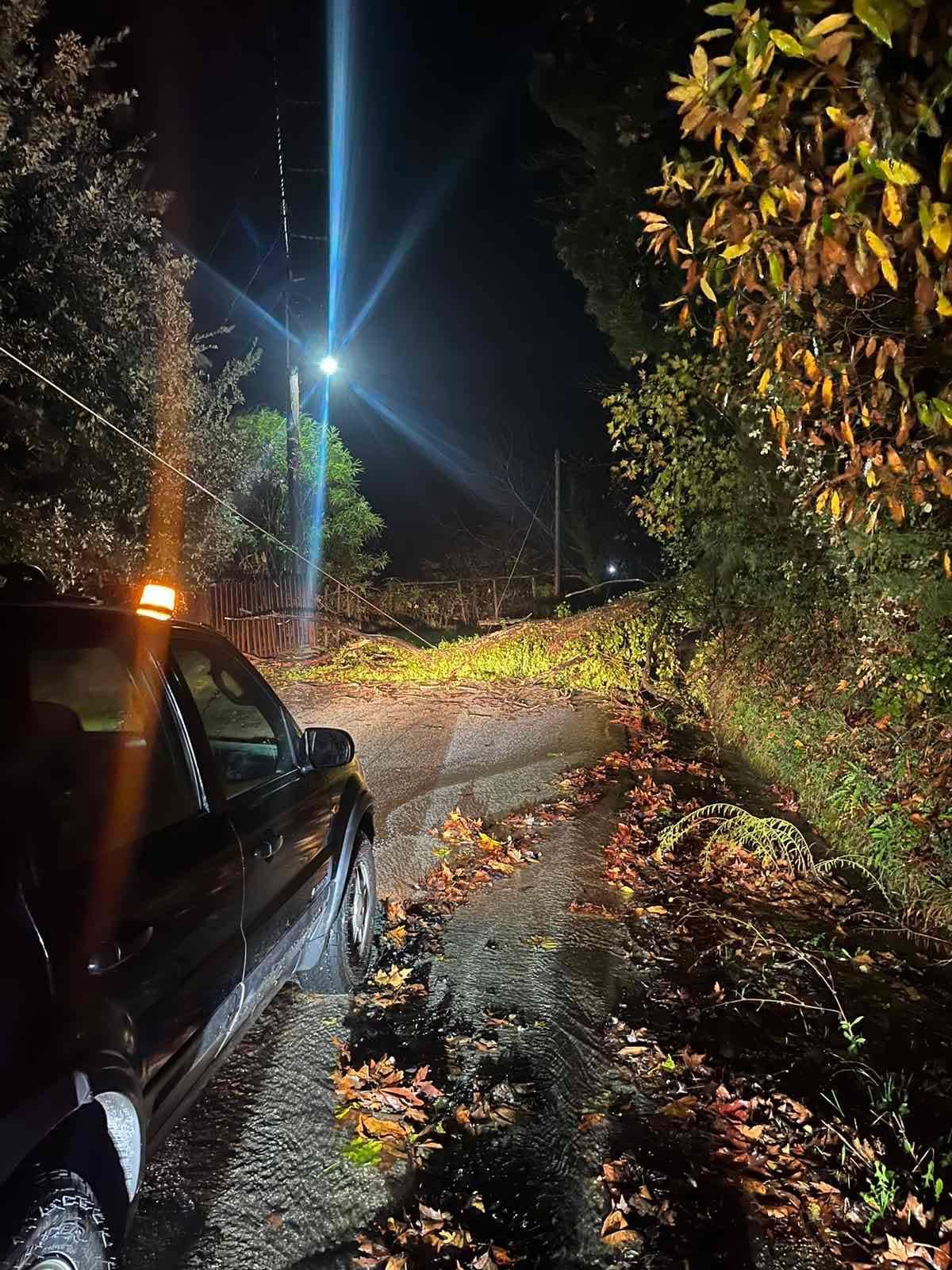 Επιπλέον, σε διάφορα σημεία του δικτύου παρατηρήθηκαν μεμονωμένες καταπτώσεις μικρών βράχων και δέντρων, καθώς και εκτεταμένη συσσώρευση φύλλων στα πρανή και στα ερείσματα. Τα φαινόμενα αντιμετωπίζονται άμεσα από τα αρμόδια συνεργεία.