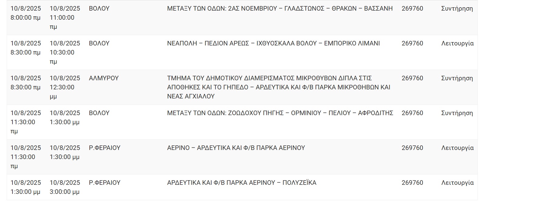 Διακοπές ηλεκτρικού ρεύματος θα σημειωθούν σε περιοχές του Βόλου και της Μαγνησίας προκειμένου να εκτελεστούν απαραίτητες τεχνικές εργασίες του ΔΕΔΔΗΕ.Ειδοποιούνται οι κάτοικοι της παρακάτω περιοχής ότι για να εκτελεσθούν οι απαραίτητες τεχνικές εργασίες της ΔΕΔΔΗΕ θα γίνει διακοπή του ηλεκτρικού ρεύματος: