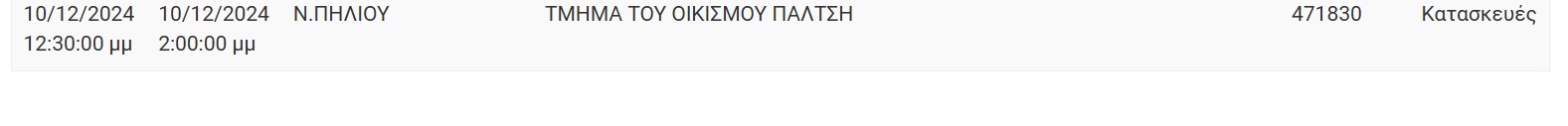 Αν οι εργασίες τελειώσουν νωρίτερα, το ρεύμα θα ξαναδοθεί πριν τον χρόνο λήξης της διακοπής που αναφέρεται πιο πάνω.
