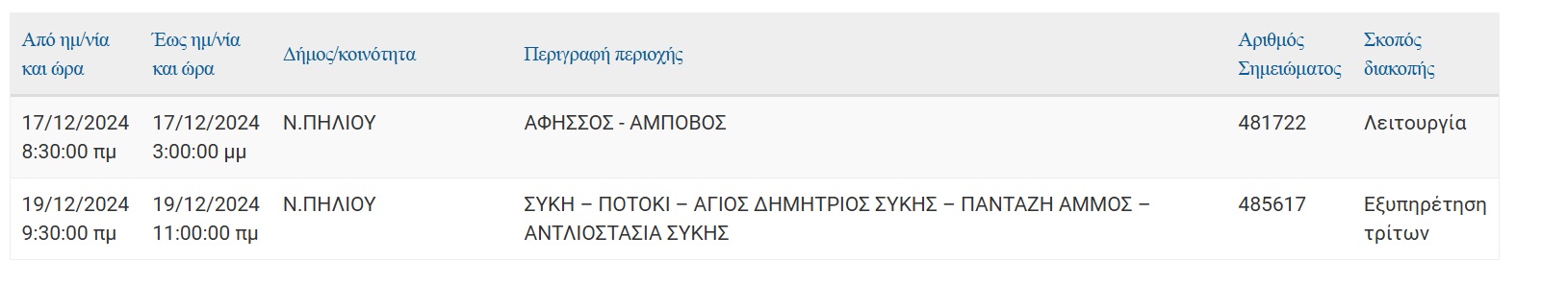 Αν οι εργασίες τελειώσουν νωρίτερα, το ρεύμα θα ξαναδοθεί πριν τον χρόνο λήξης της διακοπής που αναφέρεται πιο πάνω.