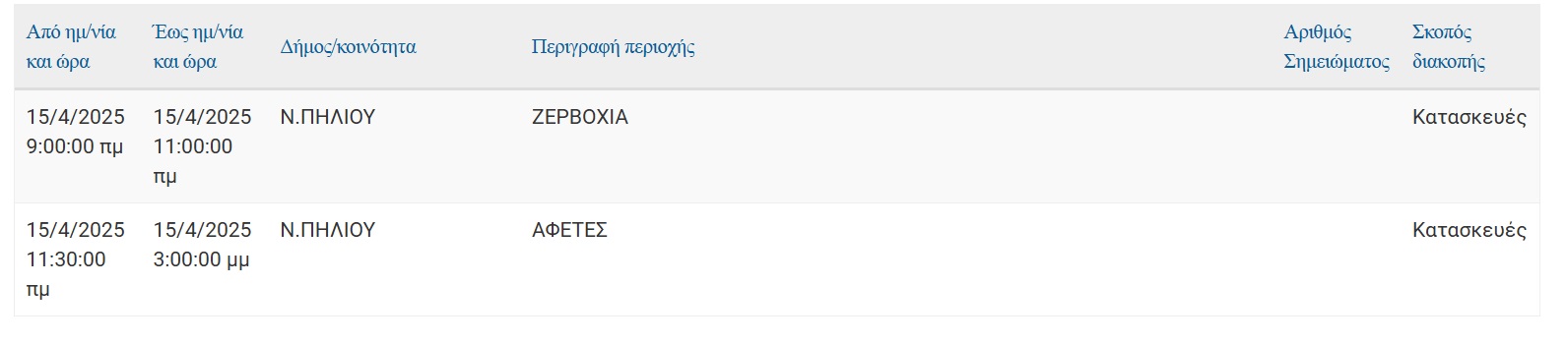 Αν οι εργασίες τελειώσουν νωρίτερα, το ρεύμα θα ξαναδοθεί πριν το χρόνο λήξης της διακοπής που αναφέρεται πιο πάνω.