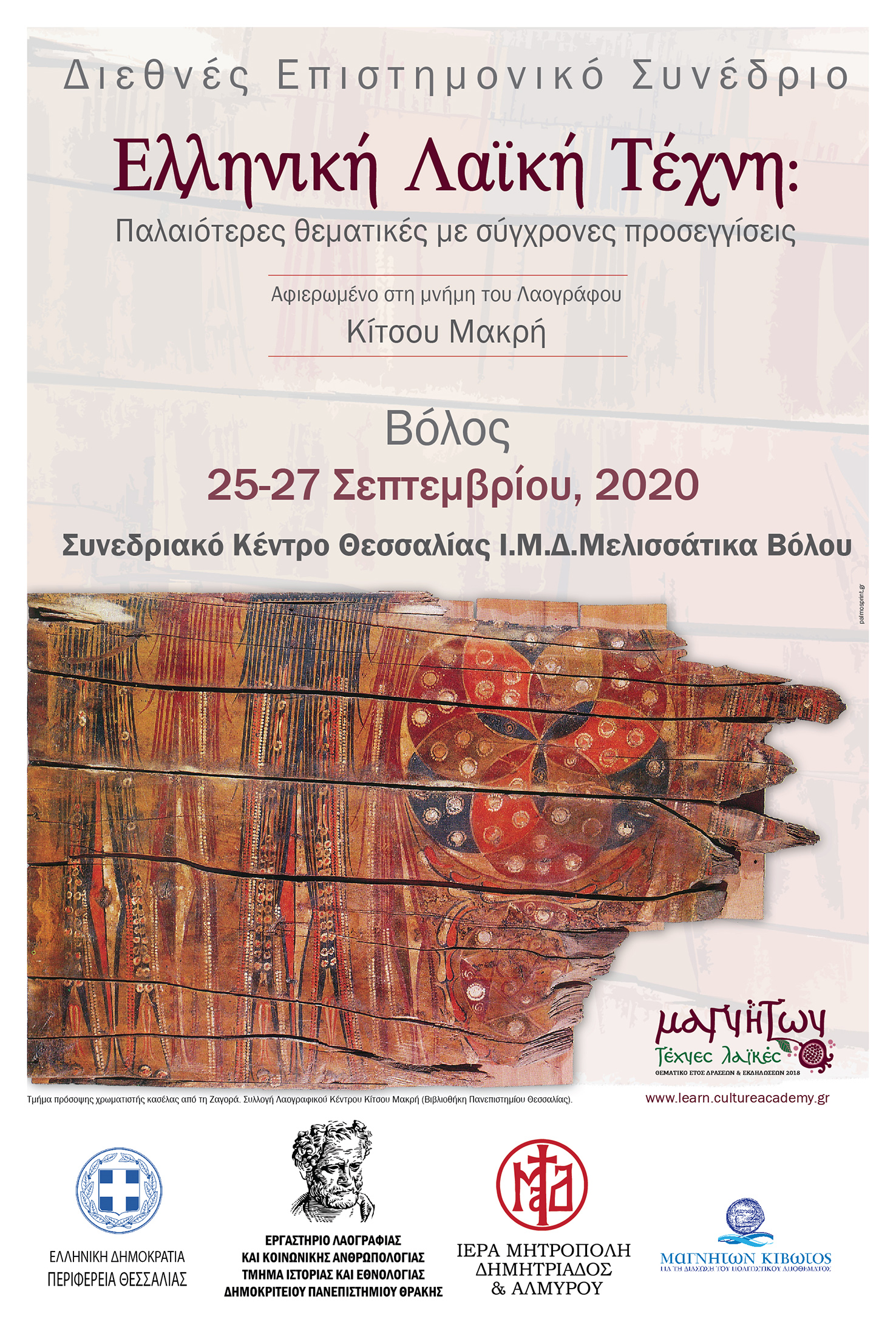 Ο φορέα Πολιτισμού της Ιεράς Μητρόπολης Δημητριάδος & Αλμυρού, «Μαγνήτων Κιβωτός, για τη διάσωση του πολιτιστικού αποθέματος» – «Ακαδημία Λαϊκού Πολιτισμού & Τοπικής Ιστορίας», σε συνεργασία με την Περιφέρεια Θεσσαλίας και το Εργαστήριο Λαογραφίας και Κοινωνικής Ανθρωπολογίας του Τμήματος Ιστορίας και Εθνολογίας του Δημοκρίτειου Πανεπιστημίου Θράκης, συνδιοργανώνουν διαδικτυακά το τριήμερο Διεθνές Επιστημονικό Συνέδριο, 25-27 Σεπτεμβρίου 2020, με τίτλο: «Ελληνική Λαϊκή Τέχνη : Παλαιότερες θεματικές με σύγχρονες προσεγγίσεις. Το Συνέδριο είναι αφιερωμένο στη μνήμη του Λαογράφου Κίτσου Μακρή.