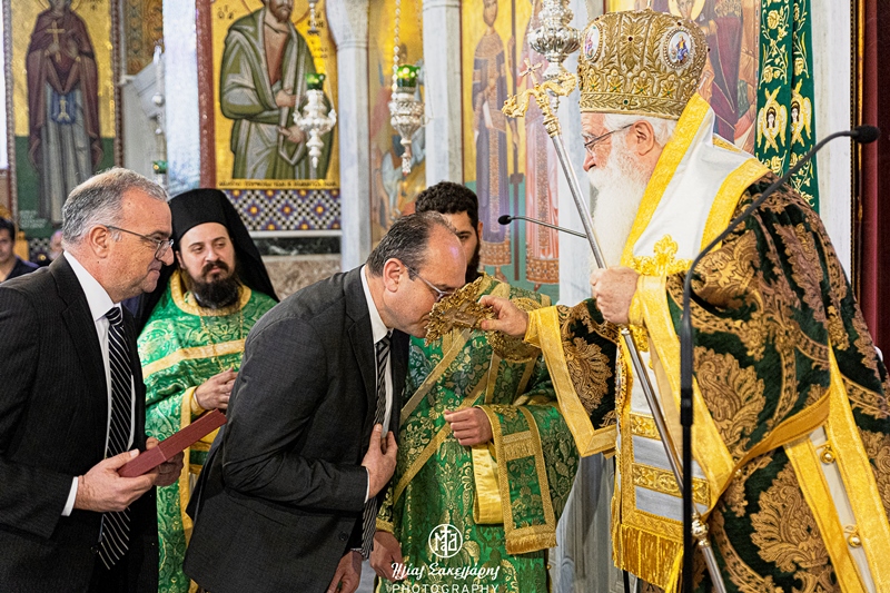 Κατά την διάρκεια της Θείας Λειτουργίας, αναγνώστηκε το Μήνυμα της Ιεράς Συνόδου για τις Ιερατικές Κλίσεις. Στο τέλος, ο Σεβασμιώτατος τίμησε τους δωρητές, που συνέβαλαν στην αποκατάσταση των υλικών ζηλιών που υπέστη ο Ναός, κατά την διάρκεια της διπλής κακοκαιρίας του περασμένου Σεπτεμβρίου, για τις οποίες μίλησε ο Προϊστάμενος του Ναού Αρχιμ. Καλλίνικος Γεωργακόπουλος. Οι αξιέπαινοι δωρητές ήταν η Χαλυβουργία Βόλου και μεμονωμένα πρόσωπα, που με μικρότερα ποσά, συνέβαλαν στην διενέργεια των απαραίτητων εργασιών. Από την μεριά του, ο Σεβασμιώτατος ευχαρίστησε τους δωρητές, τους απένειμε τις σχετικές τιμητικές διακρίσεις και τόνισε πόση σημασία έχει η συνένωση των δυνάμεων για την αντιμετώπιση ανάλογων κρίσεων, ενώ επανέλαβε την μεγάλη προσπάθεια της Τοπικής μας Εκκλησίας να στηρίξει τους πλημμυροπαθείς, προκειμένου να σταθούν στα πόδια τους, μετά την καταστροφή. Τέλος, ο κ. Ιγνάτιος απηύθυνε πρόσκληση προς όλους εκείνους που έχουν τις προϋποθέσεις να ιερωθούν, ακόμα και σε ώριμη ηλικία, να το πράξουν, όπως συνέβη, μέχρι σήμερα, με πολλούς εθελοντές – αμίσθους Κληρικούς μας, για να παραμένουν τα Θυσιαστήρια ενεργά και να ποιμαίνεται επαρκώς ο λαός του Θεού.