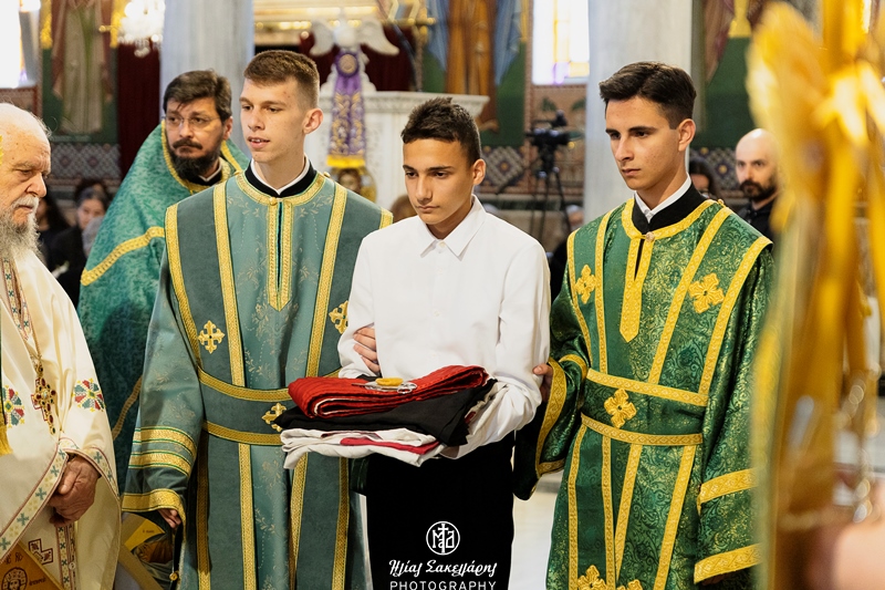 Στον Ιερό Ναό Αγίων Κωνσταντίνου και Ελένης Βόλου λειτούργησε σήμερα, Γ΄ Κυριακή των Νηστειών, της Σταυροπροσκυνήσεως, ο Σεβ. Μητροπολίτης Δημητριάδος κ. Ιγνάτιος, παρουσία μεγάλου πλήθους πιστών. Στο τέλος του Όρθρου ο Σεβασμιώτατος χειροθέτησε Αναγνώστη τον μαθητή της Α΄ Λυκείου Δημήτριο Τσαλάρη, ο οποίος διακονεί στον Ναό και είναι μέλος της χορείας των Αναγνωστών και Ιεροπαίδων της Τοπικής μας Εκκλησίας. Ο κ. Ιγνάτιος εξήρε την διάθεση αυτών των παιδιών να διακονούν την Θεία Λατρεία και τον Επίσκοπο, αλλά και την εμπιστοσύνη των γονέων τους προς την Εκκλησία μας. Αναγνώρισε την πληθώρα των ιερατικών κλίσεων στην εποχή μας, και δόξασε τον Θεό γι’ αυτό, «μάλιστα», όπως τόνισε, «σε μια εποχή που η βία έχει εισέλθει στα σπίτια και στα σχολεία μας. Η απάντηση στο φαινόμενο αυτό είναι η Χριστιανική οικογένεια. Όλα από την οικογένεια ξεκινούν. Δυστυχώς, διασαλεύσαμε τα θεμέλιά της, απαξιώνουμε την ιερότητά της, με συνέπειες τραγικές. Όμως, παιδιά, όπως ο νέος Αναγνώστης, που προέρχονται από Χριστιανικές οικογένειες, αντιστέκονται, παγαίνουν αντίθετα στο ρεύμα και γίνονται η ελπίδα μας για το μέλλον».