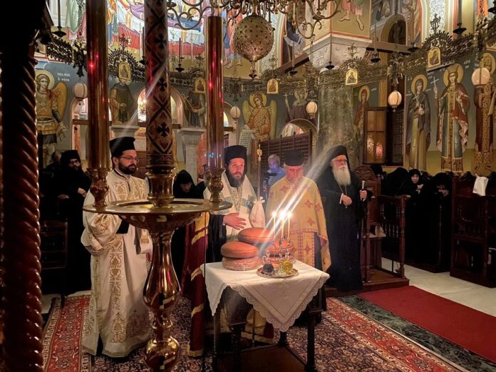 Προσκεκλημένος του οικείου Ιεράρχη, Σεβασμιωτάτου Μητροπολίτου Κασσανδρείας κ.Νικοδήμου, προεξήρχε της Θείας Λειτουργίας που τελέστηκε την παραμονή της εορτής, στην Ιερά Αγρυπνία, συλλειτουργούντων του οικείου ποιμενάρχη κ.Νικοδήμου και του Σεβασμιωτάτου Μητροπολίτου Σισανίου και Σιατίστης κ.Αθανασίου. Πλήθος προσκυνητών, είχε κατακλύσει όλο το Ησυχαστήριο, αναμένοντας επί ώρες για να προσκυνήσουν τον τάφο του Οσίου.