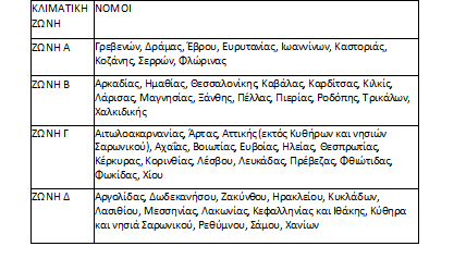 2. Κλιματικές ζώνες: Έγινε πιο δίκαιη η κατανομή σε κλιματικές ζώνες, καθώς ο νομός Έβρου τοποθετήθηκε στην Α’ κλιματική ζώνη. Ακόμα υπήρξε για πρώτη φορά πρόβλεψη για τους ορεινούς Καλλικρατικούς δήμους που αναφέρονται στο άρθρο 1 του σχετικού Νόμου, οι οποίοι εντάσσονται στην αμέσως ανώτερη κλιματική ζώνη από αυτή στην οποία εντάσσεται ο νομός στον οποίο ανήκουν (π.χ. ο δήμος Βιάννου του νομού Ηρακλείου μεταφέρεται στην Γ’ κλιματική ζώνη, ενώ ο υπόλοιπος νομός παραμένει στην Δ’ κλιματική ζώνη).