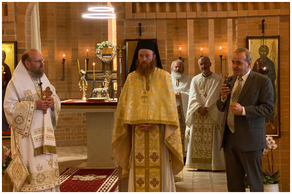 Ο Θεοφιλέστατος Επίσκοπος κ. Σοφιανός ευχαρίστησε θερμώς όλους τους κληρικούς και τους λαϊκούς τους συμμετέχοντες στη Θεία Λειτουργία, ιδιαιτέρως δε τον εορτάζοντα πρόεδρο του Τμήματος δρ. Κωνσταντίνο Νικολακόπουλο. Η ρουμανική χορωδία έψαλλε προς τιμή του εορτάζοντα τον ρουμανικό ύμνο „πολλά τα έτη“.