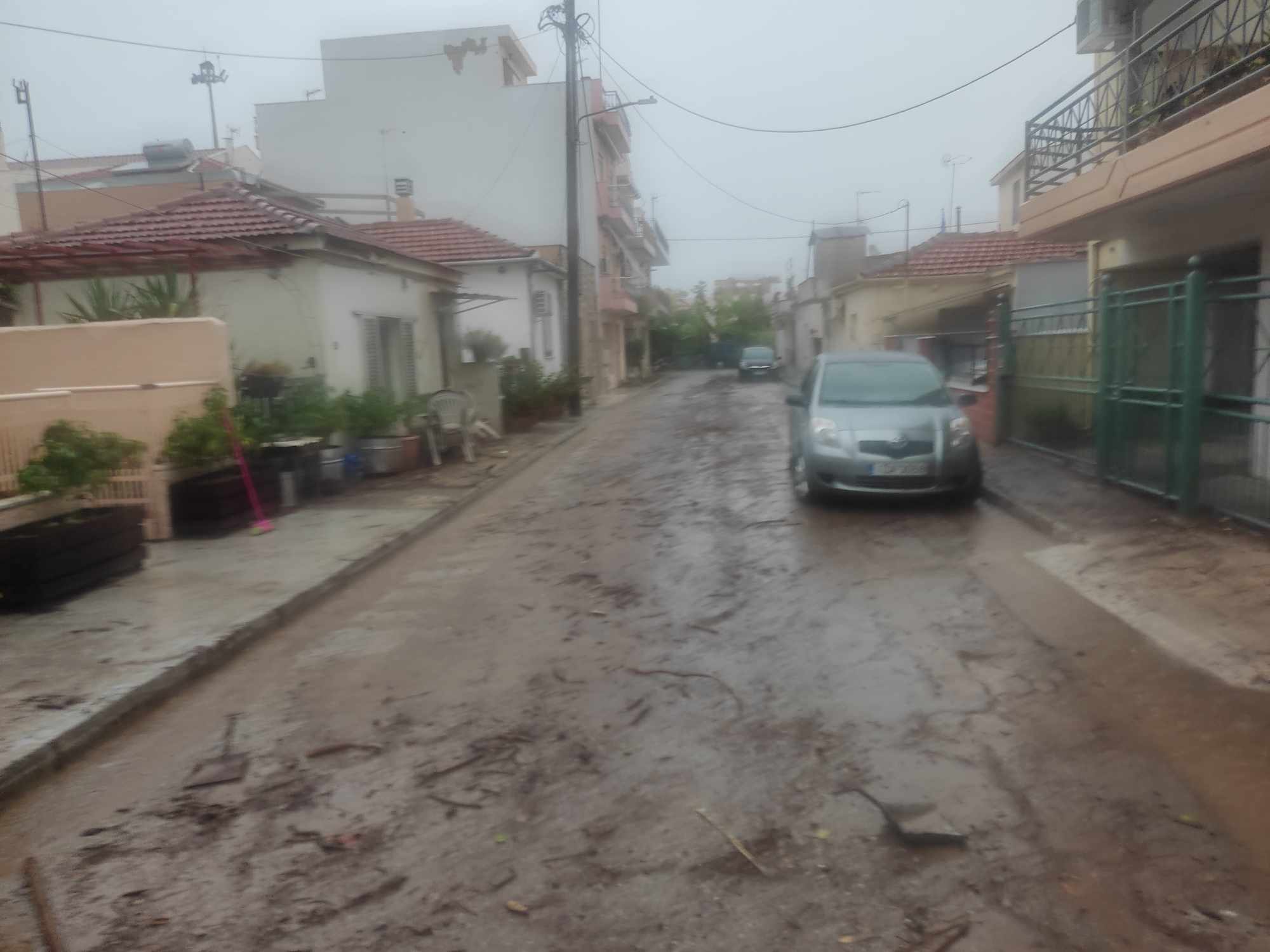 Ο χείμαρρος Κραυσίδωνας σε πολλές περιοχές έχει ξεχειλίσει και τα νερά πλημμυρίζουν δρόμους, καταστήματα και ισόγεια κατοικιών στη Χιλιαδού, το Οινόπνευμα, στους Αγίους Αναργύρους, την Νεάπολη και τα Παλαιά.