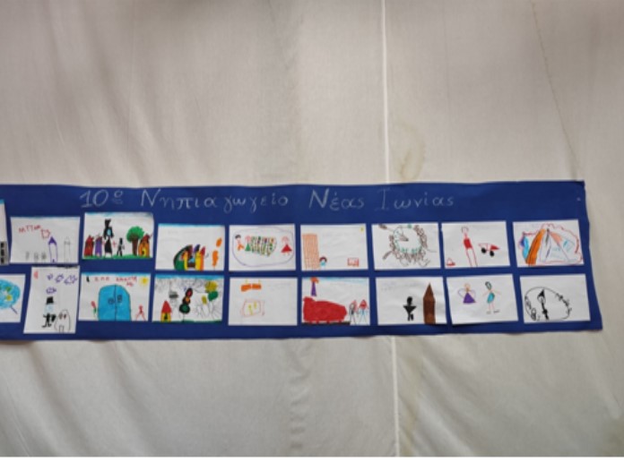 Χαρακτηριστικά το 10ο Νηπιαγωγείο Ν. Ιωνίας ξεπρόβαλε κρατώντας το κάθε παιδάκι πινακίδες με φράσεις σχετικές με τον χρόνο και αναπαριστώντας το καθένα τους ήρωες του βιβλίου.