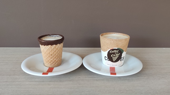 Συνήθως απολαμβάνει κανείς τον καφέ του σε γυάλινο ή χάρτινο ποτήρι. Το «Coffee in a cone» όμως έρχεται να κάνει μία άλλη πρόταση, αρκετά διαφορετική και… γευστική(!) που ήδη έχει κερδίσει τις προτιμήσεις αυτών που επισκέπτονται τον χώρο στην οδό Μαιάνδρου 114, αφού μπορεί να σερβίρει όλους τους καφέδες, ειδικά τους ζεστούς σε ειδικό βρώσιμο χωνάκι!