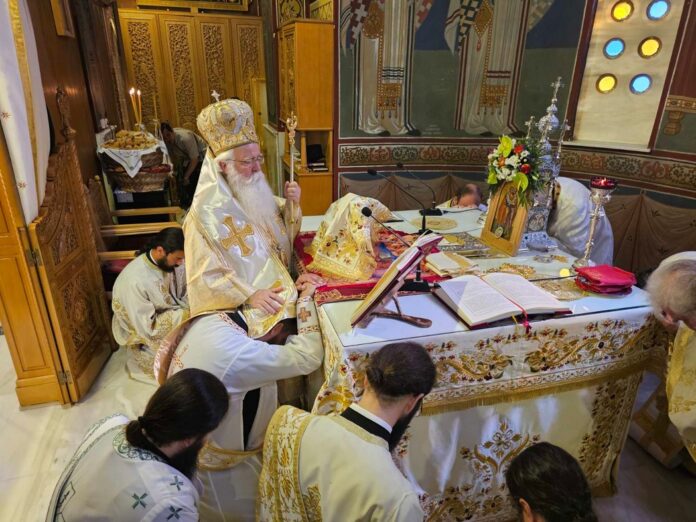 Στον πανηγυρίζοντα Ιερό Ναό Αγίων Αποστόλων Πέτρου και Παύλου λειτούργησε σήμερα ο Σεβ. Μητροπολίτης Δημητριάδος κ. Ιγνάτιος, παρουσία πλήθους ευλαβών προσκυνητών. Κατά την διάρκεια της Θείας Λειτουργίας, τέλεσε την εις Πρεσβύτερον Χειροτονία του εγγάμου Διακόνου Δημητρίου Μαρέ, πατρός ενός τέκνου, αποφοίτου της Ακαδημίας του Εμπορικού Ναυτικού.