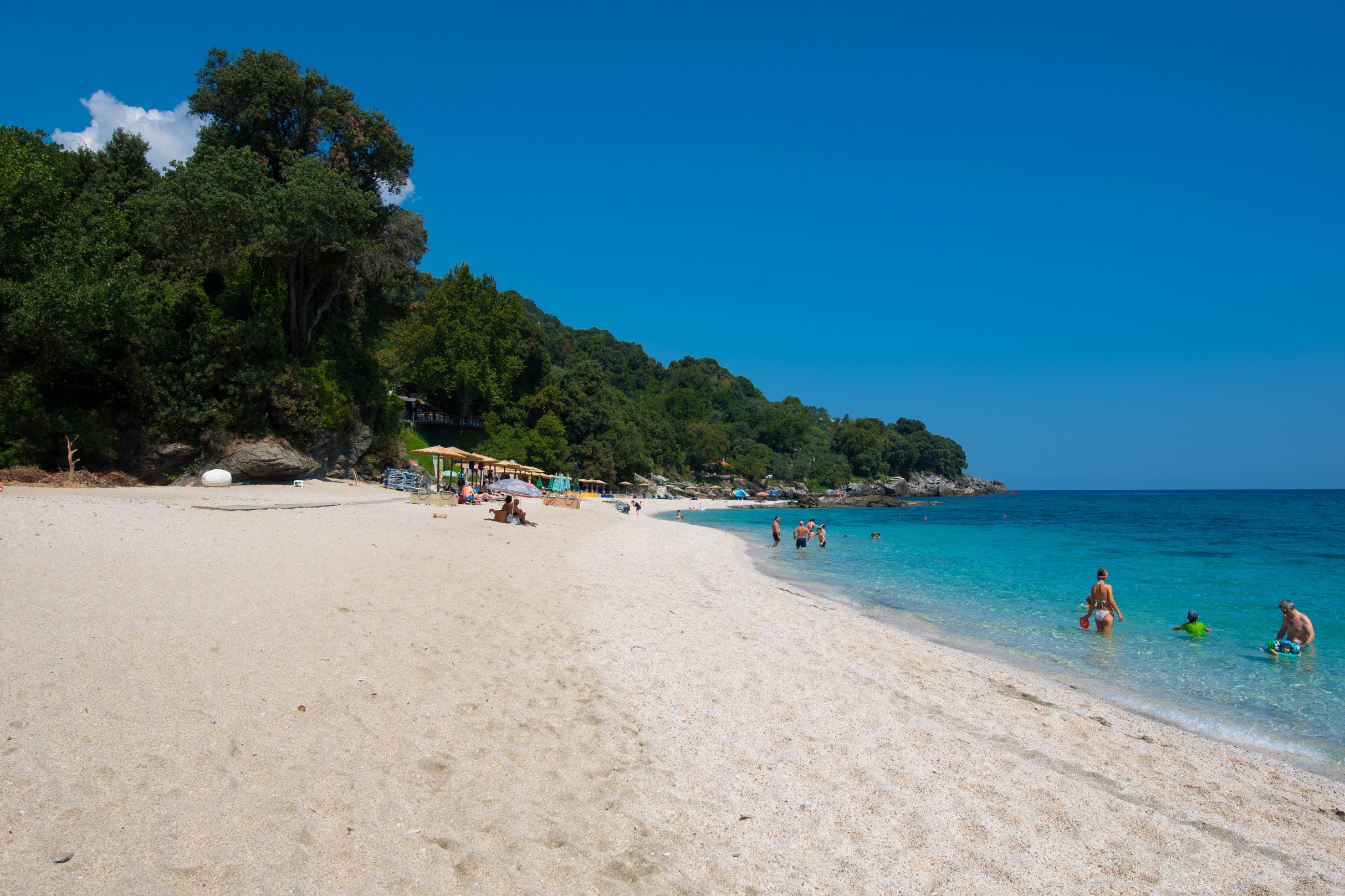 Πλησιάζοντας, ντόπιοι πωλούν σύκα και βατόμουρα τον Αύγουστο, ολόφρεσκα, ζουμερά, σε πλαστικά ποτηράκια, που καταναλώνονται μονομιάς μέχρι να βρείτε την ιδανική θέση στην παραλία. Το κολύμπι και εδώ θέλει προσοχή – υπάρχει φυσικά ναυαγοσώστης -, αλλά είναι μία από αυτές τις μαγικές εμπειρίες που δεν χορταίνεις στο Πήλιο. Το δε απόγευμα, όταν πέσει ο ήλιος κι ο ουρανός πάρει μια χαρακτηριστική ροζ απόχρωση, η βόλτα στον πεζόδρομο με soundtrack πάντα το δυνατό παφλασμό, είναι απολαυστική τόσο για τα παιδιά που κάνουν ποδήλατο και τρέχουν αμέριμνα, όσο και για τους μεγαλύτερους που ρεμβάζουν αδιάκοπα.