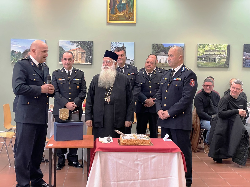 Στη σύντομη ομιλία του ο Σεβασμιώτατος τόνισε: «Δεν το έχετε ανάγκη εσείς, εμείς έχουμε ανάγκη να σας πούμε ένα μεγάλο ευχαριστώ για το έργο που επιτελείτε. Καλοκαίρι και χειμώνα, 24 ώρες το εικοσιτετράωρο, για να νιώθουμε όλοι ασφαλείς. Σας ευχαριστούμε από καρδιάς και προσευχόμαστε για εσάς και τις οικογένειές σας. Είστε τιμή για την πατρίδα και τον τόπο μας. Ο Θεός να σας χαρίζει υγεία και δύναμη.» Στο τέλος της εκδήλωσης παρέθεσε γεύμα στην αίθουσα «Ιωλκός», ως ένδειξη ευγνωμοσύνης και τιμής προς όλους τους πυροσβέστες για την πολύτιμη και διαρκή προσφορά τους.