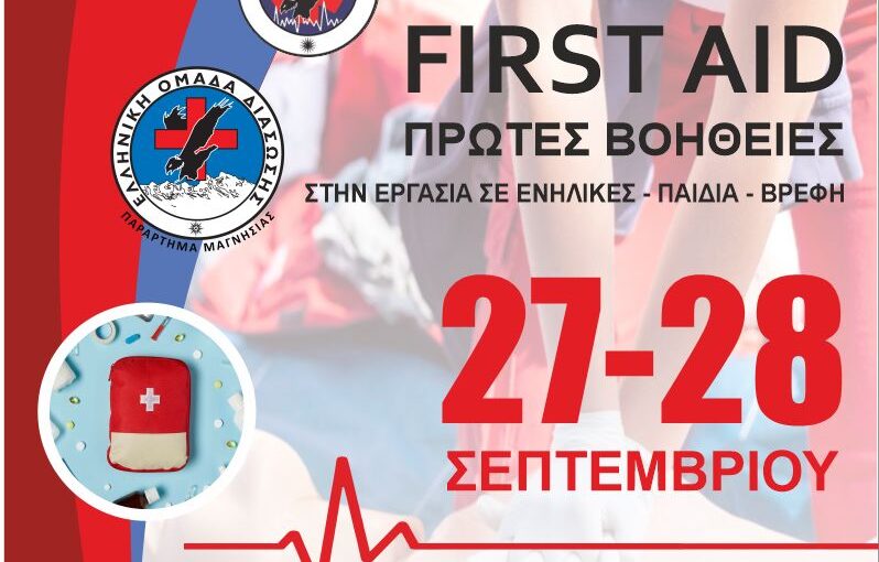Το Τμήμα Πρώτων Βοηθειών της Ελληνικής Ομάδας Διάσωσης Μαγνησίας διοργανώνει πλήρη και πιστοποιημένη εκπαίδευση Πρώτων Βοηθειών, υπό την αιγίδα του διεθνούς φορέα EMP Medic First Aidσήμερα Σάββατο 27 και την Κυριακή 28 Σεπτεμβρίου. Πληροφορίες & κρατήσεις θέσεων: 6981320360 (καθημερινά, απογευματινές ώρες).