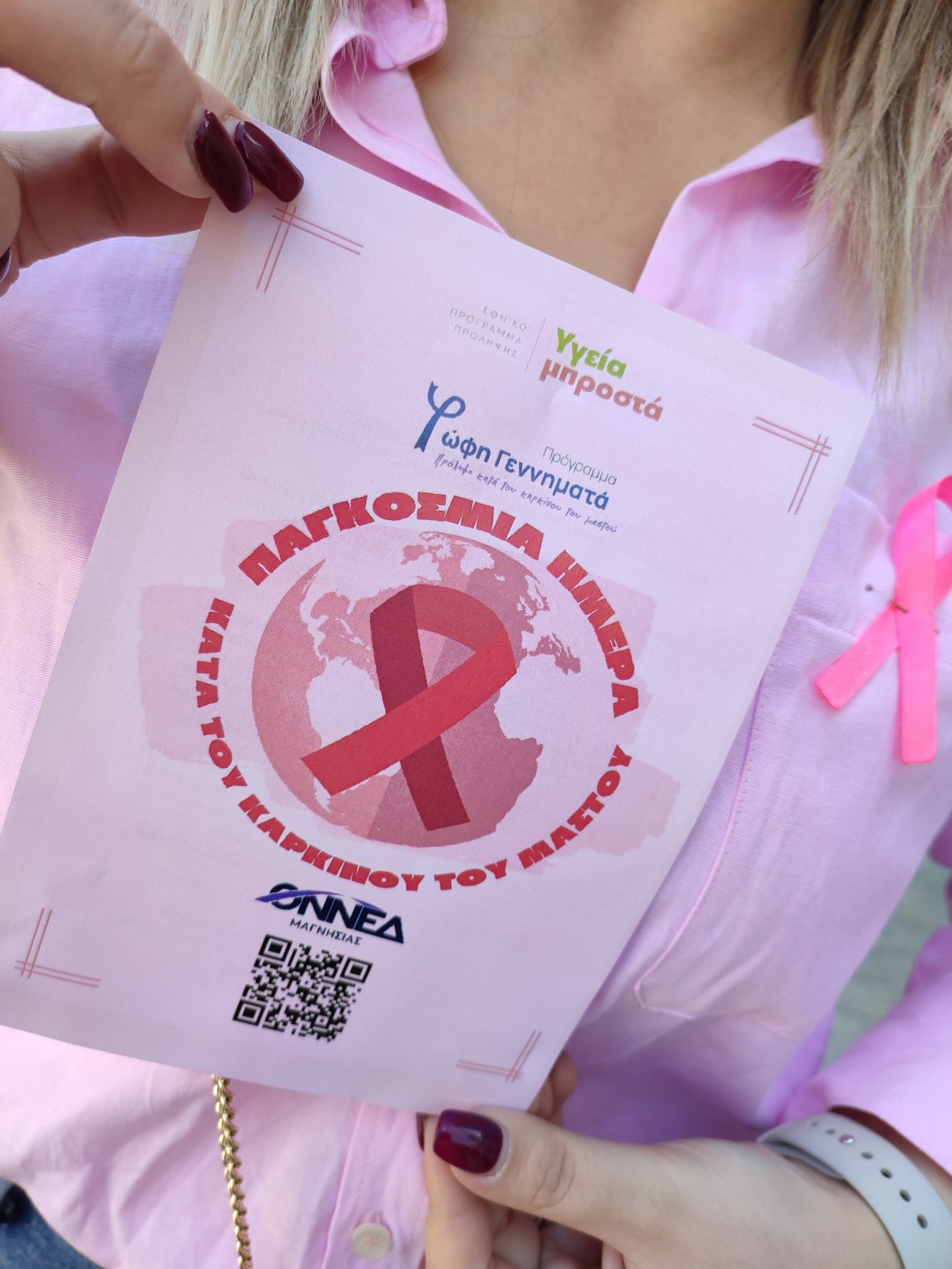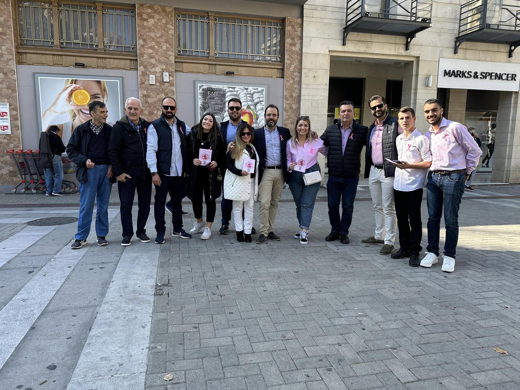 Ενημερωτική δράση με αφορμή την Παγκόσμια Ημέρα κατά του Καρκίνου του Μαστού πραγματοποίησαν σήμερα νέοι και νέες μέλη της ΟΝΝΕΔ Μαγνησίας στον πεζόδρομο της Ερμού. Τα μέλη της οργάνωσης νέων της Νέας Δημοκρατίας, μαζί με τους Βουλευτής Μαγνησίας Χρήστο Μπουκώρο, Θανάση Λιούπη και Κωνσταντίνο Μαραβέγια διένειμαν ενημερωτικά φυλλάδια και μίλησαν με Βολιώτισσες κάθε ηλικίας για την σημασία της πρόληψης και της έγκαιρης διάγνωσης του καρκίνου του μαστού. Ο μήνας Οκτώβριος άλλωστε είναι αφιερωμένος σ’ αυτό τον σκοπό ενώ κάθε χρόνο στις 25 Οκτωβρίου τιμάται ειδικά η μέρα κατά του καρκίνου του μαστού. Όπως ανάφερε ο γιατρός και Βουλευτής Μαγνησίας Θανάσης Λιούπης: