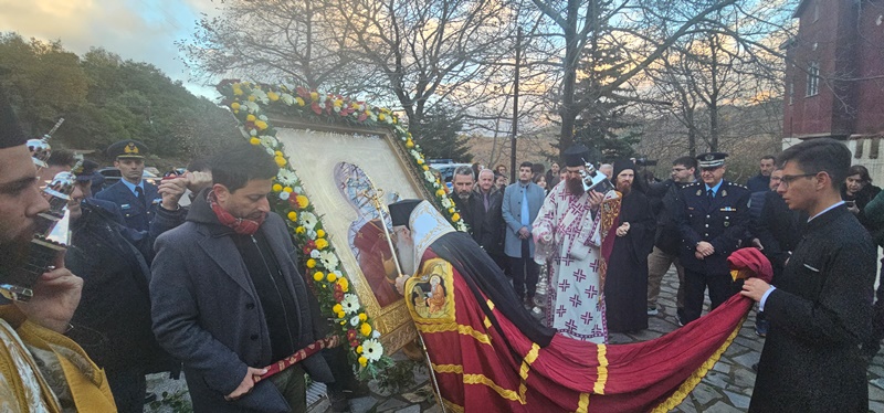 Ιστορικές στιγμές έζησε η άνω Ιερά Μονή Παναγίας άνω Ξενιάς, την Κυριακή 17/12, καθώς υποδέχθηκε αντίγραφο της Ιεράς και Θαυματουργού Εικόνος της Παναγίας Ελαιοβρύτισσας, την οποία κόμισε και δώρησε στην Μονή ο Ηγούμενος της Ιεράς, Μεγίστης Μονής Βατοπαιδίου Αρχιμ. Εφραίμ, κατόπιν σχετικού αιτήματος του Σεβ. Ποιμενάρχου μας κ. Ιγνατίου και του Ηγουμένου της Μονής Αρχιμ. Νεκταρίου Υφαντίδη. Την Ιερά Εικόνα υποδέχθηκε, επικεφαλής Κλήρου και λαού, ο Σεβασμιώτατος Μητροπολίτης μας κ. Ιγνάτιος, παρουσία εκπροσώπων Ιερών Μονών από διάφορες Μητροπόλεις και πλήθους προσκυνητών.