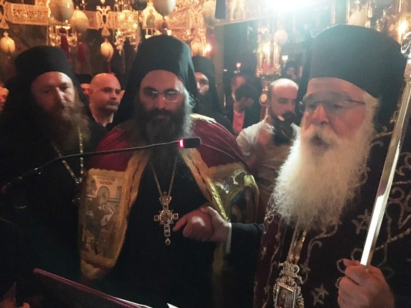 Μετά τον Εσπερινό, ξεκίνησε η Ακολουθία της Ενθρονίσεως, κατά την οποία ο Σεβ. κ. Ιγνάτιος απένειμε στον νέο Ηγούμενο τον Ηγουμενικό Σταυρό, την Ηγουμενική Ράβδο και του Ηγουμενικό Μανδύα και τον ανεβίβασε στον Ηγουμενικό Θρόνο, ενώ το ΑΞΙΟΣ! Κλήρου και λαού δονούσε τους θόλους του ιστορικού Καθολικού της Μονής.