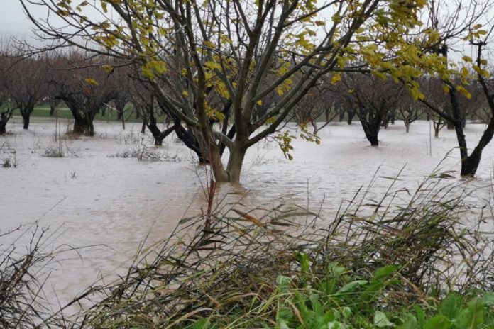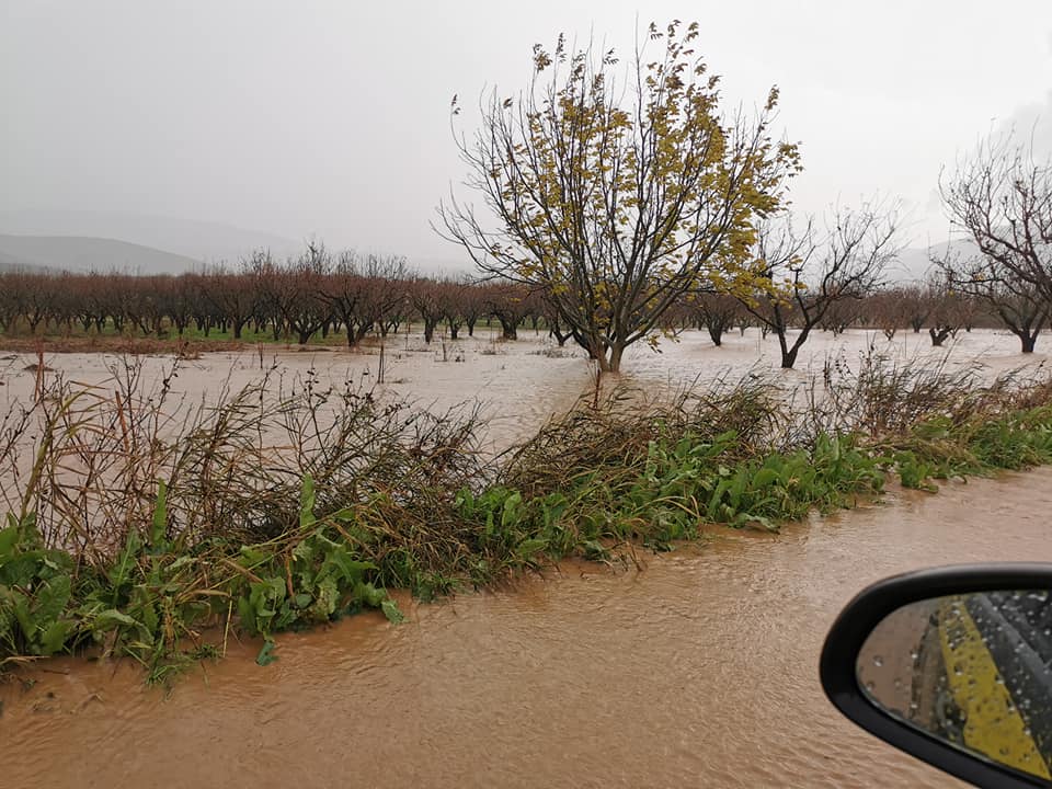 Εξαιτίας της έντονης βροχόπτωσης τα παρακάρλια χωράφια έχουν πλημμυρίσει.