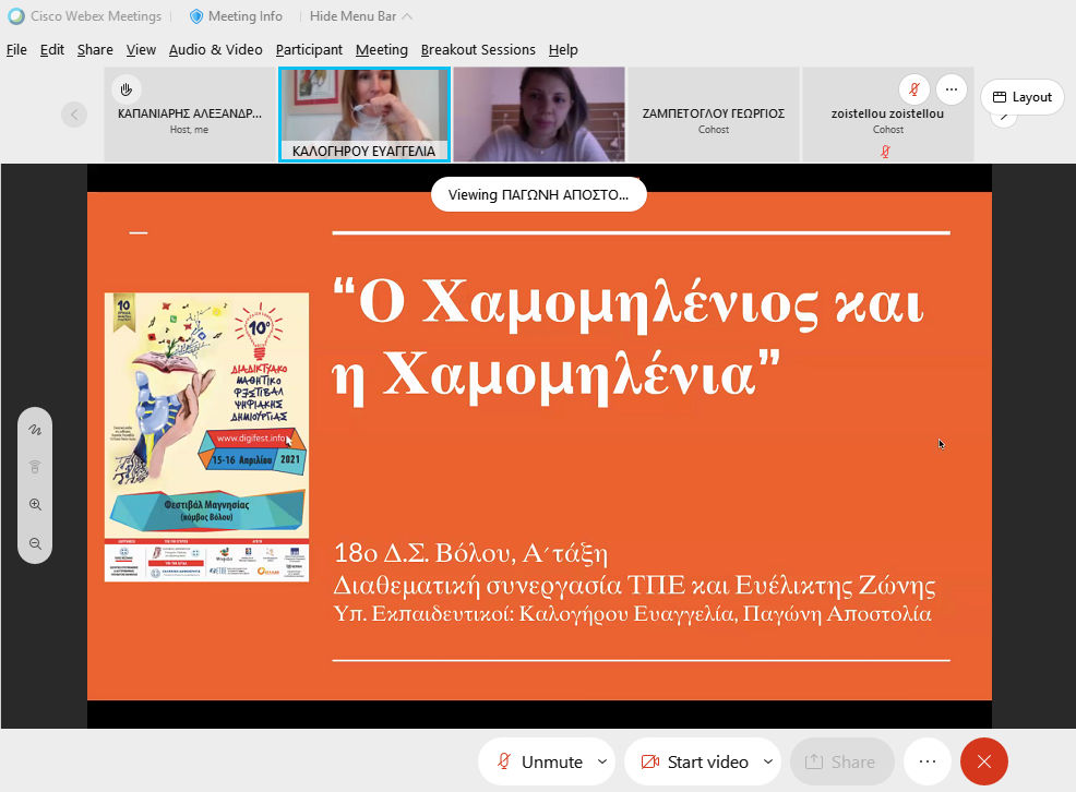 Ολοκληρώθηκε την Παρασκευή 16/4 το 10ο Διαδικτυακό Φεστιβάλ Ψηφιακής Δημιουργίας στη Μαγνησία με παρουσιάσεις έργων μαθητών/τριών της Πρωτοβάθμιας Εκπαίδευσης Μαγνησίας. Οι παρουσιάσεις πραγματοποιήθηκαν μέσω της πλατφόρμα εξ αποστάσεως εκπαίδευσης webex και συμμετείχαν εννιά σχολικές μονάδες με διαφορετικά ψηφιακά έργα που αφορούσαν από ψηφιακή παράσταση καραγκιόζη με προγραμματισμό, ψηφιακές αφηγήσεις, εφαρμογές με εργαλεία web 2.0 και προγραμματισμός με συνδυασμό εκπαιδευτικής ρομποτικής.