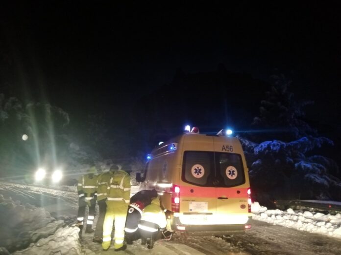 Επιχείρηση μέσα στον χιονιά για τη μεταφορά τριών ηλικιωμένων από το Σουρλίγκειο στο Νοσοκομείο