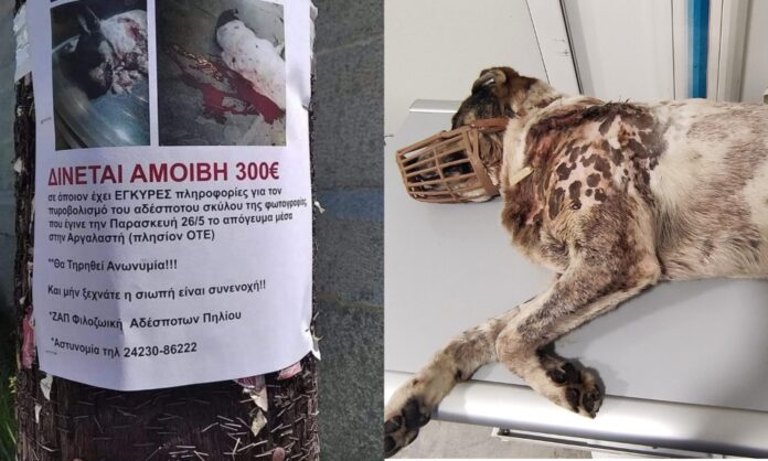 Πριν από λίγη ώρα κάτοικοι της Αργαλαστής και μέλη της Φιλοζωικής Αδέσποτων Πηλίου επικήρυξαν τον άγνωστο που πυροβόλησε το αθώο ζώο και κόλλησαν αφίσες ενημερώνοντας όλους πως εάν έχουν κάποια πληροφορία για τον δράση να επικοινωνήσουν.