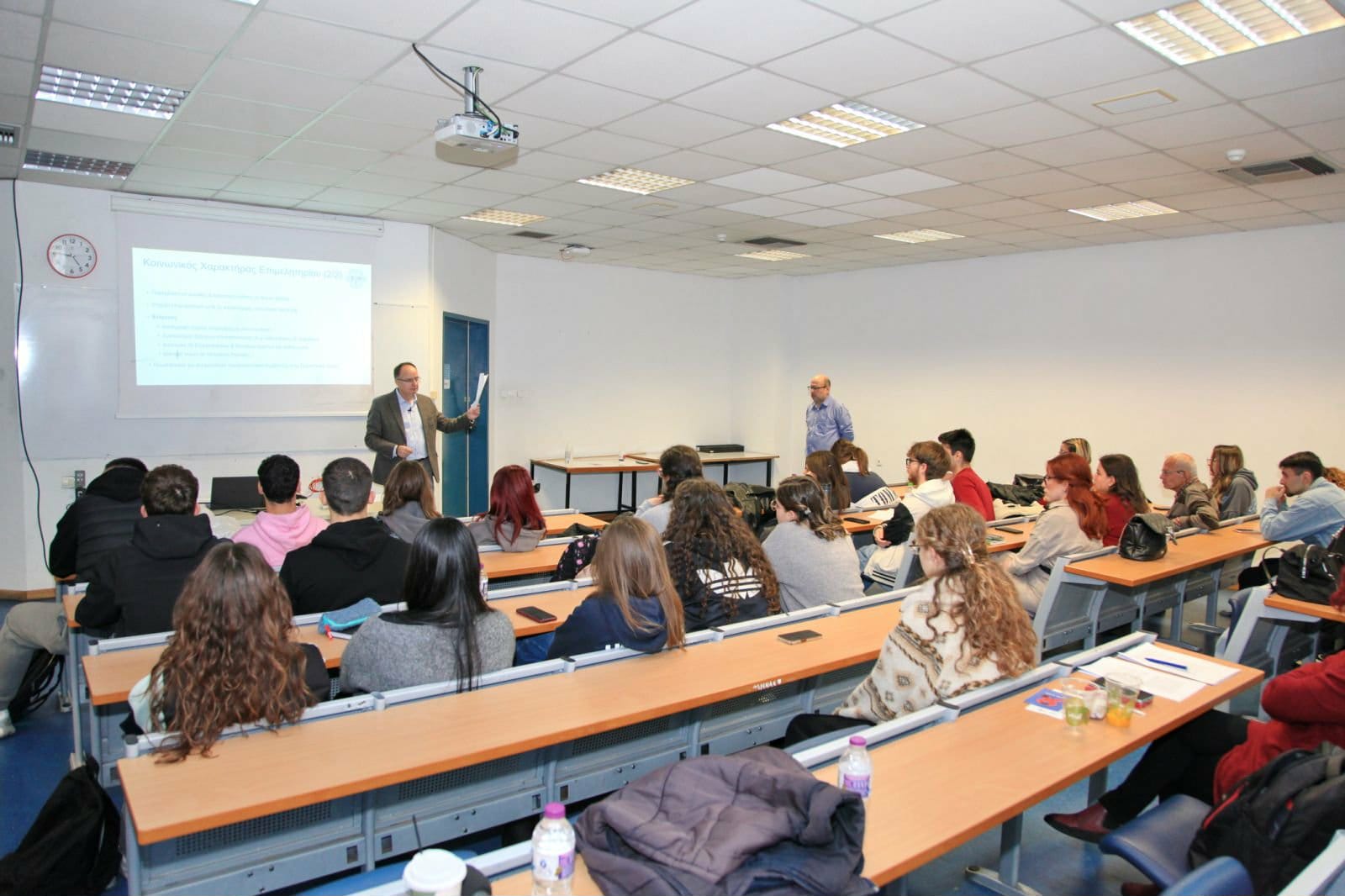 Η διάλεξη πραγματοποιήθηκε στο περιθώριο του μαθήματος «Πολιτική Οικονομία», ενώ εντάσσεται στην γενικότερη συνεργασία που έχει αναπτύξει ο φορέας με το Πανεπιστημιακό ίδρυμα, με το οποίο και έχει υπογράψει από τον Φεβρουάριο του 2017 σύμφωνο συνεργασίας με σκοπό την προετοιμασία, στήριξη και προώθηση της τοπικής επιχειρηματικότητας.