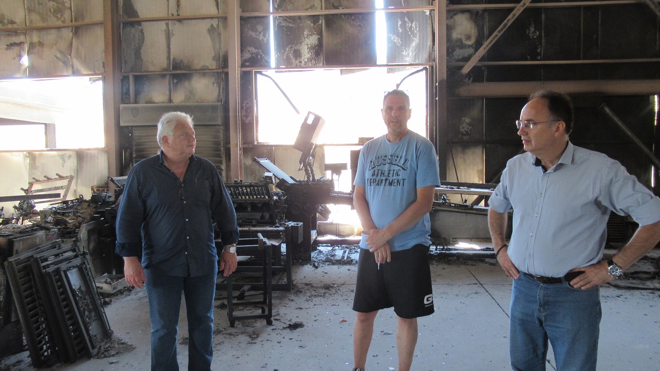 Την ίδια ώρα, την απόλυτη καταστροφή βιώνει και ο κ. Σπύρος Γιαννίκος, καθώς η επιχείρηση βιοβλιοδεσίας που είχε στην περιοχή του Σέσκλου κάηκε ολοσχερώς. Ακούγοντας προσεκτικά τον κ. Γιαννίκο, ο Πρόεδρος του Επιμελητηρίου Μαγνησίας διαβεβαίωσε ότι θα καταβάλλει όλες εκείνες τις προσπάθειες, ώστε να ληφθούν μέτρα στήριξης άμεσα, τόσο από το Υπουργείο, όσο και από το Επιμελητήριο για να μπορέσει η συγκεκριμένη επιχείρηση να ξαναζωντανέψει.