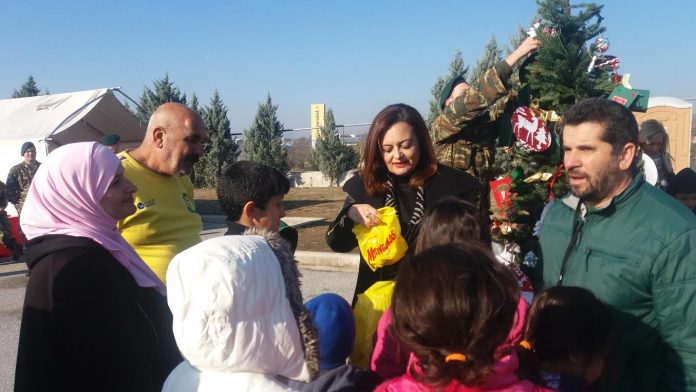 Πιο συγκεκριμένα η κ. Τοκαλή επισκέφθηκε τις εγκαταστάσεις της Μόζας Α.Ε. όπου και φιλοξενούνται 65 πρόσφυγες, όλοι Συριακής καταγωγής, εκ των οποίων 30 παιδάκια και αφού μοίρασε δώρα, όλοι μαζί στόλισαν το χριστουγεννιάτικο δέντρο.