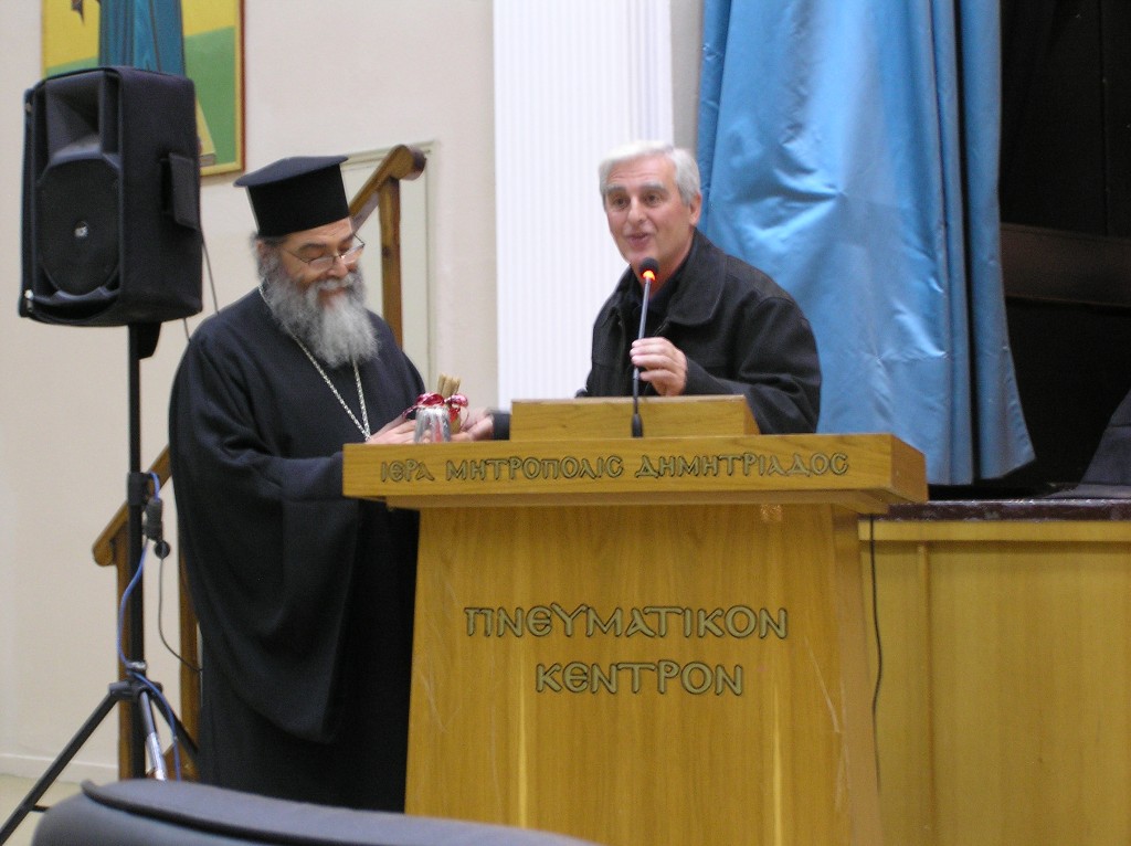 Την εκδήλωση χαιρέτησε, τέλος, ο Σεβ. Μητροπολίτης Δημητριάδος κ. Ιγνάτιος, ο οποίος τόνισε ότι ««Ο Εσταυρωμένος», με το έργο του, έχει κατορθώσει να μοιραζόμαστε την χαρά με τους αναγκεμένους αδελφούς μας. Αυτή είναι και η ουσία της εορτής των Χριστουγέννων…». Ο κ. Ιγνάτιος ευχαρίστησε ιδιαιτέρως τον π. Θεόδωρο και τους συνεργάτες του για το πολύμοχθο έργο που επιτελούν, αλλά και την εξαιρετική συνεργασία που έχουν διαμορφώσει με τις σχετικές με το έργο τους δημόσιες υπηρεσίες, όσο και με τα σχολεία της περιοχής μας, μεταδίδοντας στα παιδιά μας την αλήθεια και την ουσία της Χριστιανικής ζωής, που είναι η αγάπη και η προσφορά.
