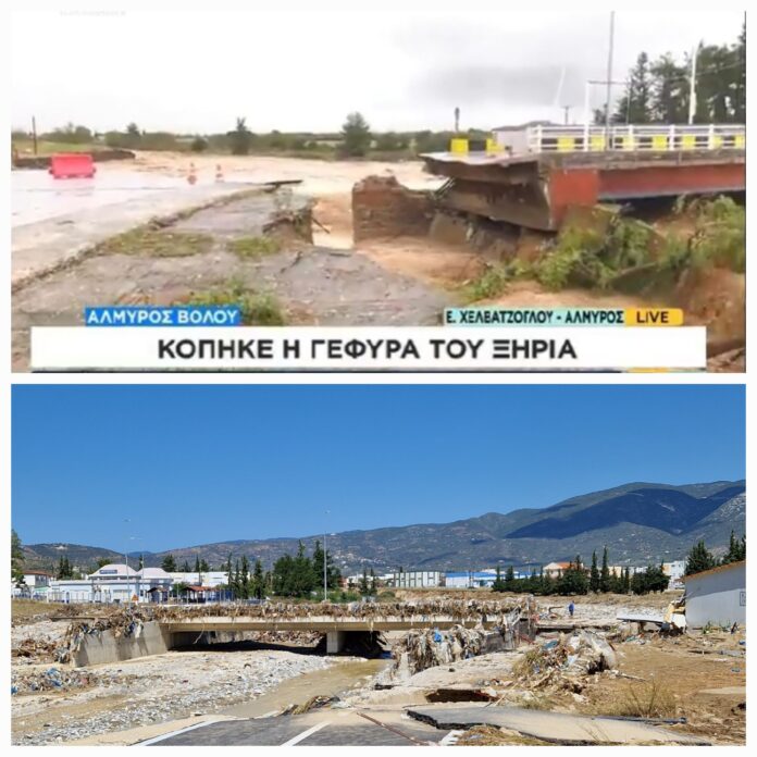 Όπως τονίζει, «η κατάρρευση της γέφυρας του Ξηριά του Αλμυρού και η χαμηλή γέφυρα στις Άσπρες Πεταλούδες στον Ξηριά του Βόλου που προκάλεσε την πλημμύρα στη συνοικία του Νέου Δέλτα, αποτελούν τα πιο χαρακτηριστικά παραδείγματα αστοχίας υλοποίησης αντιπλημμυρικών έργων μετά τον Ιανό με καθυστερήσεις στην υλοποίησή τους και πλούσια χρηματοδότηση (5-7 εκ ευρώ) από την Περιφέρεια Θεσσαλίας.