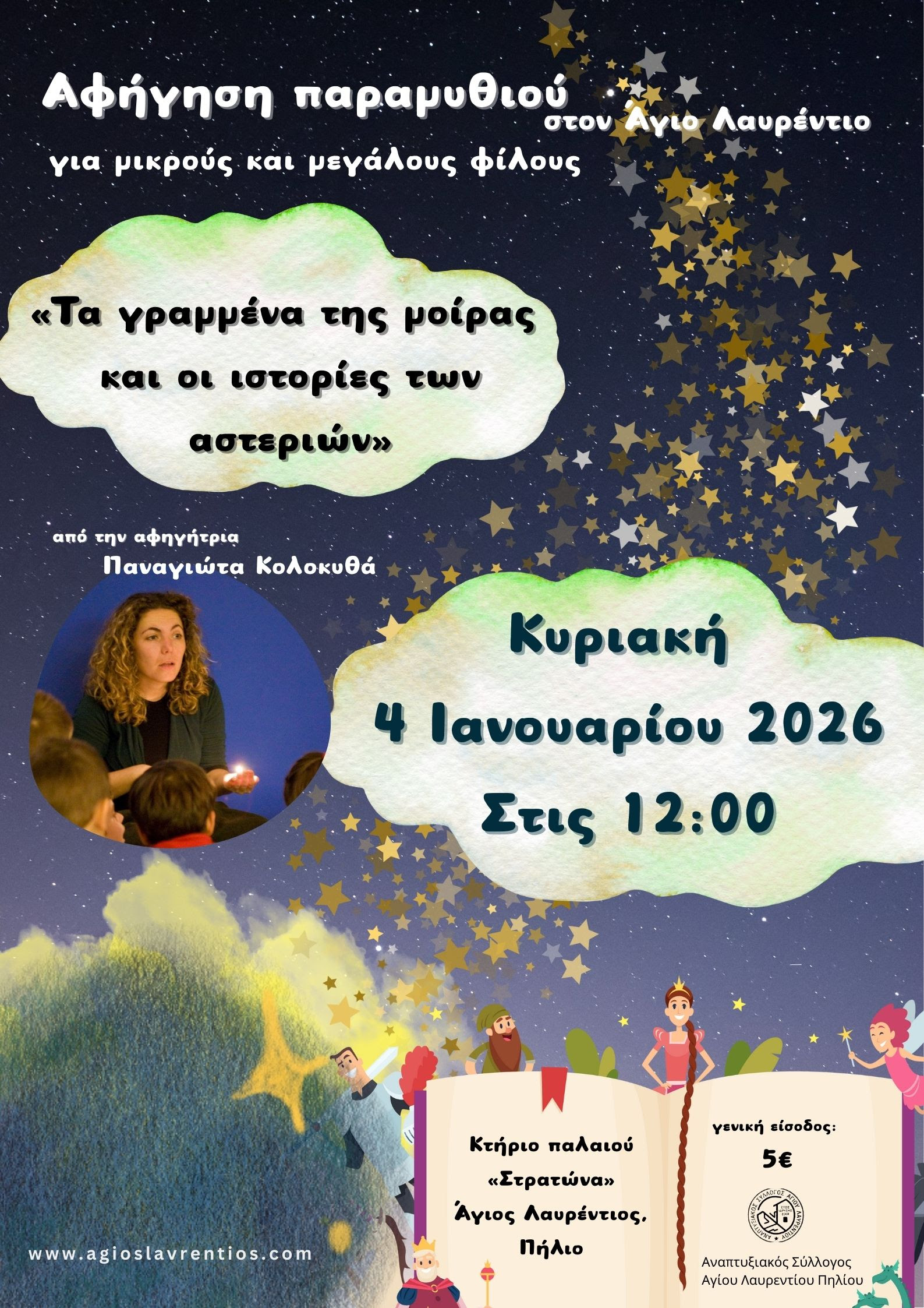 4 Ιανουαρίου στις 12:00: Αφήγηση παραμυθιού από την Παναγιώτα Κολοκυθά για μικρούς και μεγάλους