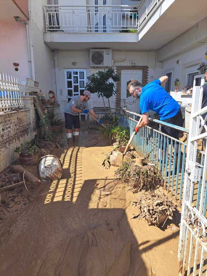 Το κλιμάκιο ξεκίνησε από την περιοχή του Παλιού Λιμεναρχείου. Η συνοικία έχει κατακλυστεί από λάσπη. Οι ζημιές είναι μεγάλες. Έπιπλα, ηλεκτρικές συσκευές, ρουχισμός έχουν καταστραφεί. Τα μέλη της Νεολαίας βοήθησαν στον καθαρισμό του σπιτιού της συνοικίας.
