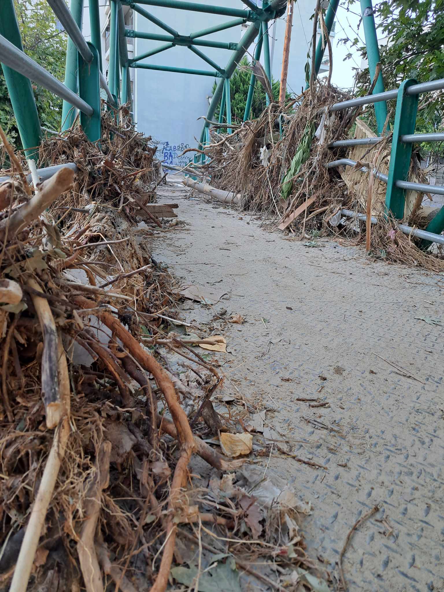 Στη συνέχεια το κλιμάκιο βοήθησε στον καθαρισμό δύο σπιτιών στην Καραμπατζάκη και στη διάνοιξη διαδρομών σε οδούς που είχαν καλυφθεί από τη λάσπη. Μέλη της Νεολαίας μαζί με περίοικους, καθάρισαν την πεζογέφυρα στο ύψος της Αναλήψεως, μεταξύ Καραμπατζάκη και Ζάχου.