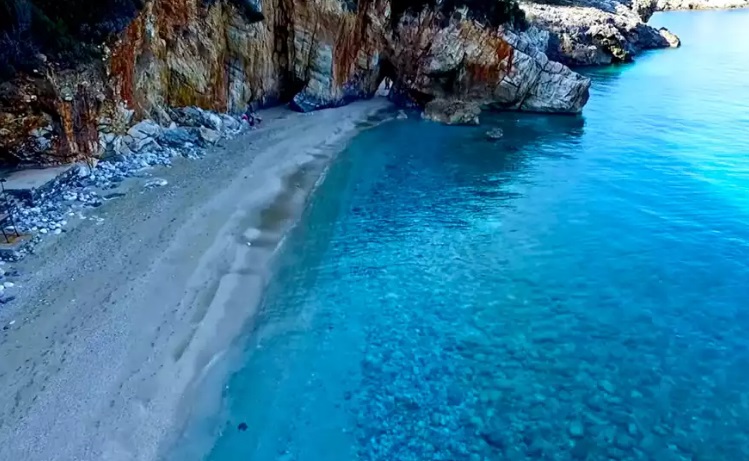 Η ξανθή άμμος ενώνεται με τα λευκά βότσαλα, τα οποία δίνουν το χαρακτηριστικό τιρκουάζ χρώμα στα σχεδόν διάφανα και παγωμένα νερά της θάλασσας. Το πράσινο των δέντρων συνθέτει ένα μοναδικό τοπίο που κάνει το μέρος να μοιάζει βγαλμένο από τις πιο εξωτικές παραλίες της Καραϊβικής.