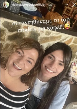 Οι δυο τους ποζάρουν δίπλα δίπλα χωρίς ίχνος μακιγιάζ και το σχόλιο της Βίκυς απλά επικό: «συναντηθήκαμε τα top models για καφέ».