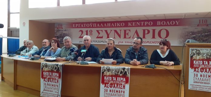 “Μπροστά στην επέλαση αυτή συμφωνήσαμε στη σύσκεψη των συνδικαλιστικών οργανώσεων της περιοχής, όλοι μαζί στην οργάνωση συλλαλητηρίου το Σάββατο 30 Νοεμβρίου στις 11 το πρωί στο Δημαρχείο Βόλου, ώστε να εμποδίσουμε και να ανατρέψουμε τις πολιτικές που οδηγούν στο νέο προμελετημένο έγκλημα στην κοινωνική ασφάλιση”, υπογράμμισε ο κ. Ρούσσας, ο οποίος ανέφερε και τους 30 Συλλόγους της Μαγνησίας που συστρατεύονται σ’ αυτή την κινητοποίηση, μεταξύ αυτών και φοιτητικοί Σύλλογοι του Πανεπιστημίου Θεσσαλίας, όπως και Αγροτικοί Σύλλογοι από τον Αλμυρό, τη Σούρπη, το Πουρί, τη Μακρυρράχη, τη Ζαγορά και το Ν. Πήλιο.