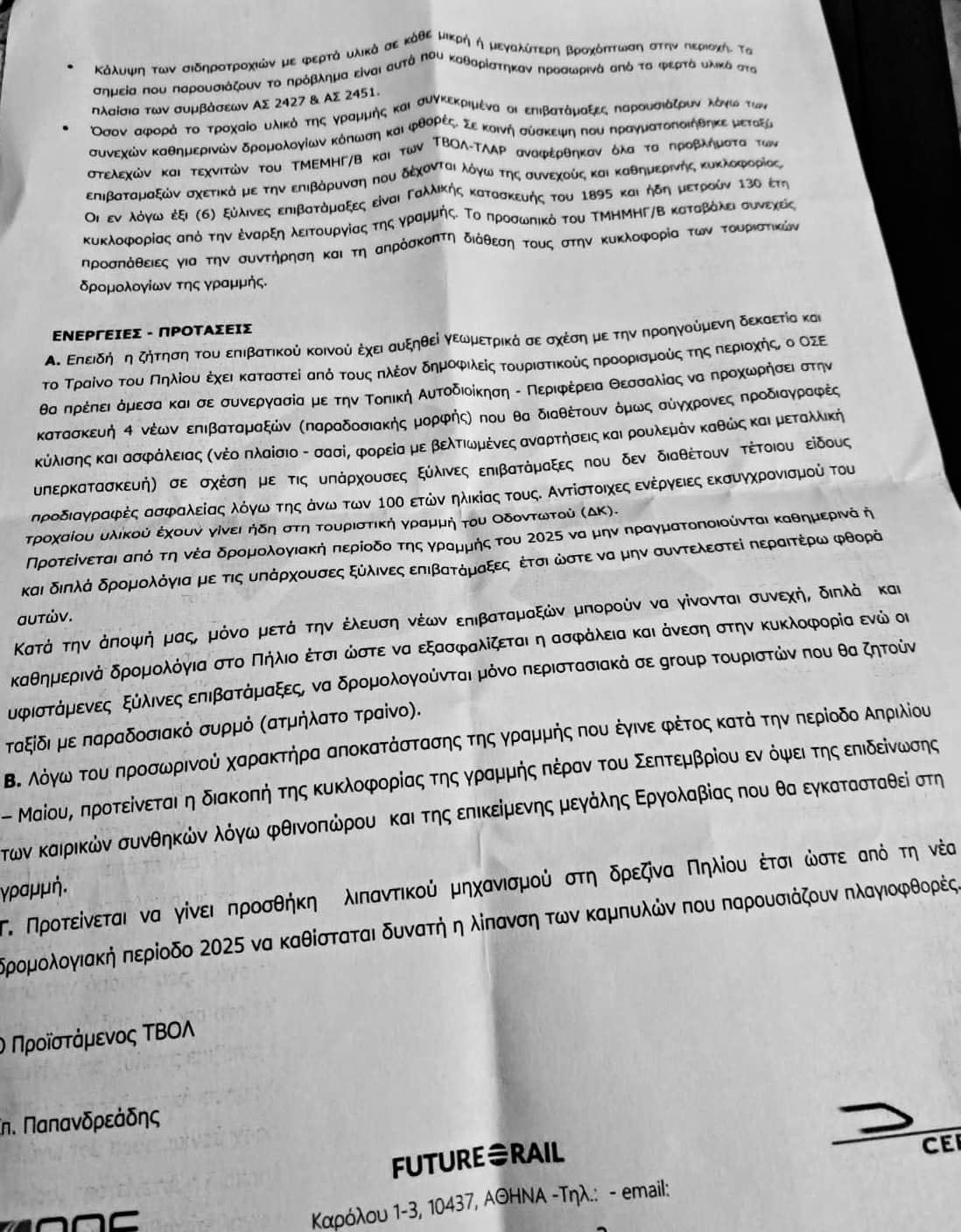 ΓΙΑ ΕΝΑ ΜΗΝΑ, το Τρένο του Πηλίου μετέφερε καθημερινά οικογένειες, παιδιά, επισκέπτες σε γέφυρες και πλαγιές με καταγεγραμμένα προβλήματα και φθορές στις γραμμές και το τροχαίο υλικό, χωρίς ενημέρωση της Hellenic Train, και σοβαρό κίνδυνο για την ασφάλεια επιβατών, προσωπικού κινήσεως και μηχανοδηγών.