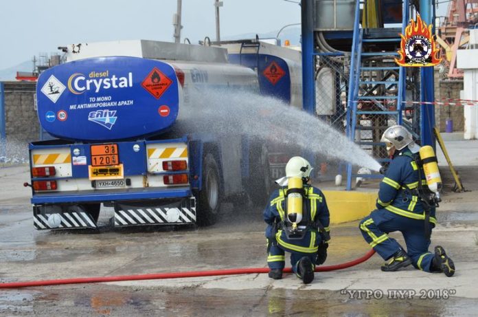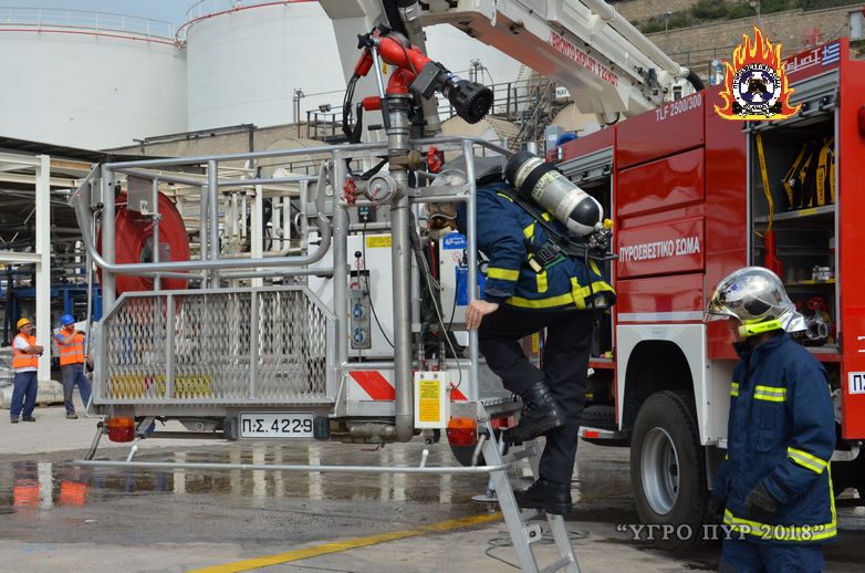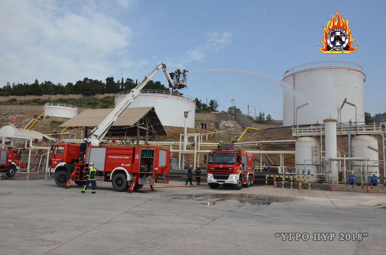 Με επιτυχία πραγματοποιήθηκε από την Π.Υ. Βόλου σήμερα το πρωί, η άσκηση “ΥΓΡΟ ΠΥΡ 2018”, στις εγκαταστάσεις της ΕΛΙΝΟΙΛ στην περιοχή “Αστέρια” Αγριάς Βόλου, που είχε ως σκοπό την προετοιμασία των εμπλεκομένων υπηρεσιών και φορέων, στην αντιμετώπιση πυρκαγιάς που είναι πιθανό να εκδηλωθεί σε δεξαμενές καυσίμων επιχείρησης πετρελαιοειδών, με ταυτόχρονη επέμβαση για απεγκλωβισμό ατόμου.
